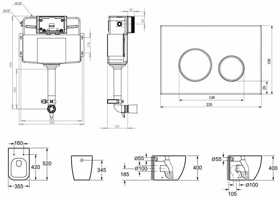 - Существенные дополнительные расходы: бачок скрытого монтажа стоит почти столько же, сколько и система инсталляции для подвесного, тогда как рамы нет...