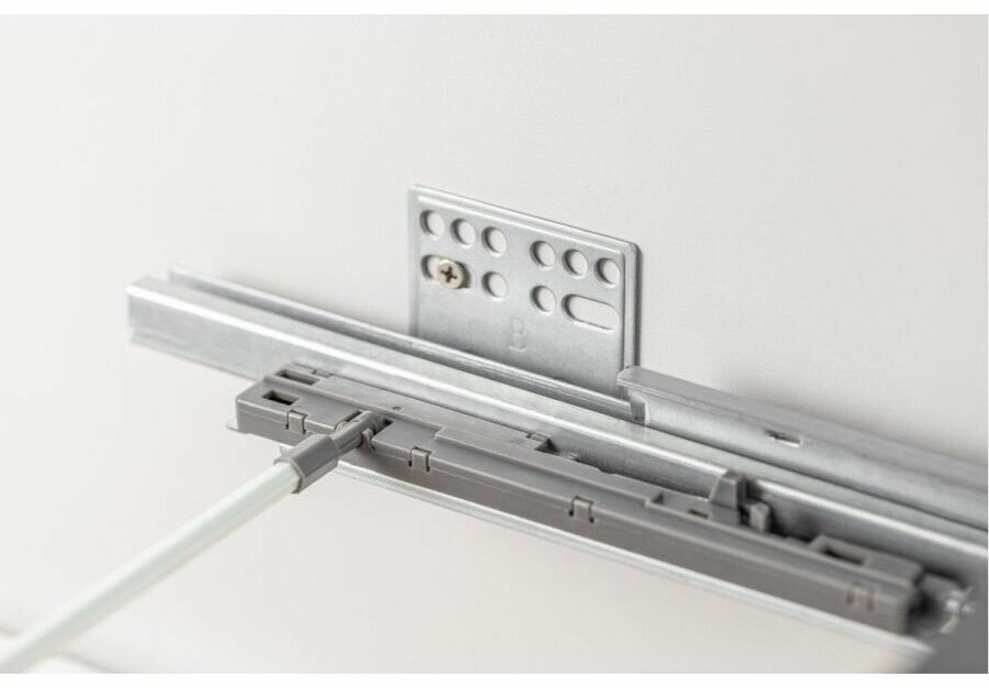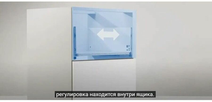 - Функциональные элементы, используемые для регулировки, расположены на внутренней стороне боковины, то есть внутри ящика. Таким образом легче осуществлять регулировку, когда ящик расположен боковиной у стены.