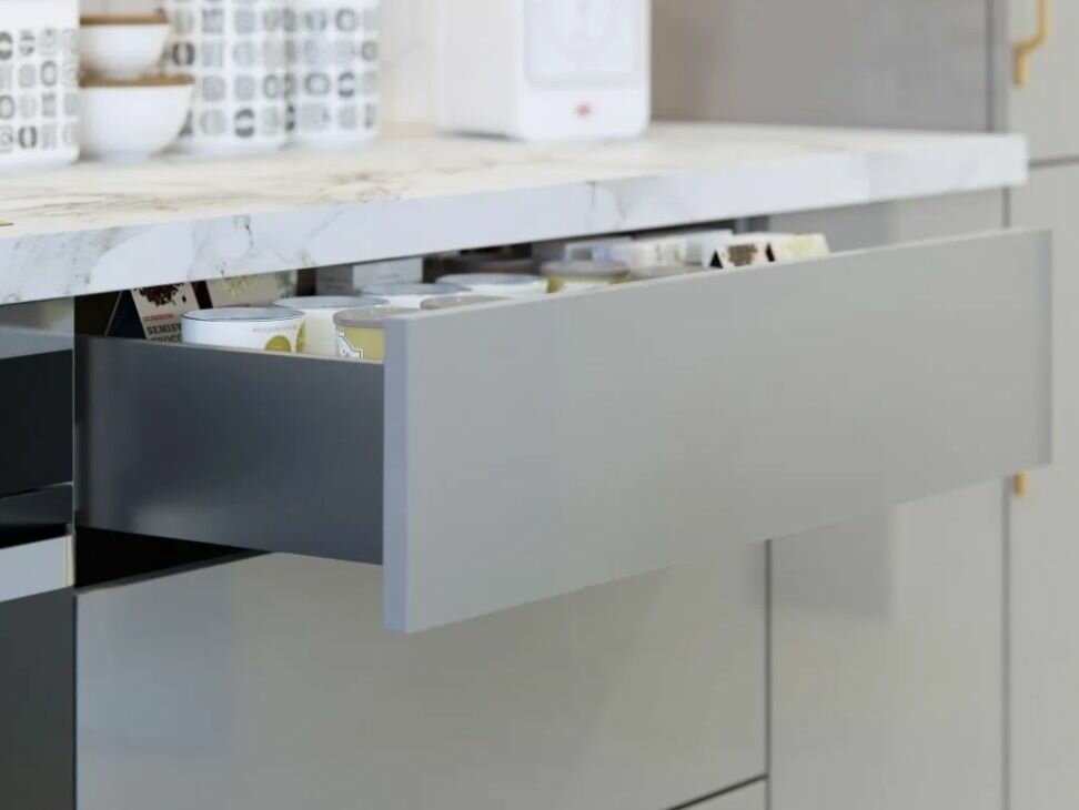 - Легкое выдвижение ящика, посредством нажатия на фасадную панель.