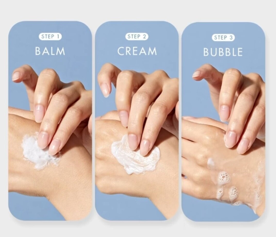 Бальзам-пенка бережно удаляет загрязнения, излишки кожного сала, омертвевшие клетки и макияж, не раздражая кожу и не вызывая сухости. Средство увлажняет и освежает кожу, укрепляет ее защитный барьер и препятствует потере влаги. Уникальная текстура бальзама сначала трансформируется в крем, а затем в пенку, выполняя функцию сразу 3 средств для очищения кожи. pH: 5,2~6,2.