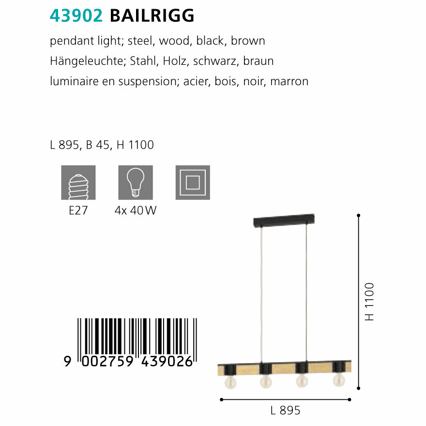 Подвесная люстра Eglo Bailrigg / 43902