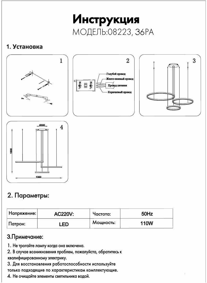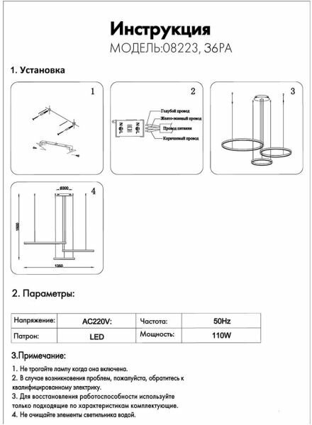 | Номенклатура | 08223,36PA(3000K) Подвес диммируемый Тор латунь w133.5*95(d80+60+40) h150 Led 110w (3000K) с пультом ДУ |