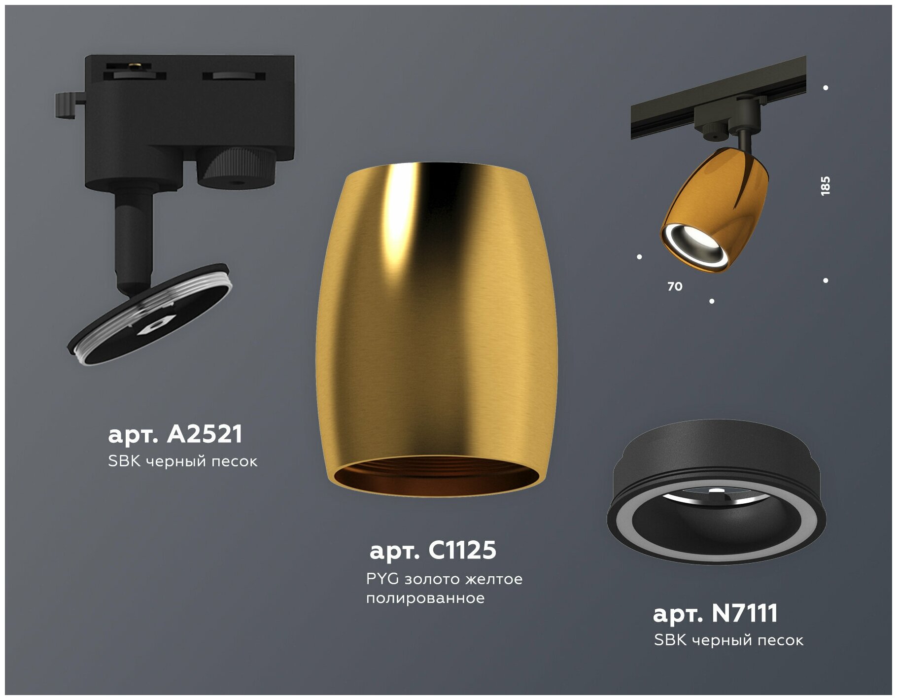 | Номенклатура | XT1125010 PYG/SBK/FR золото желтое полированное/черный песок/белый матовый MR16 GU5.3 |