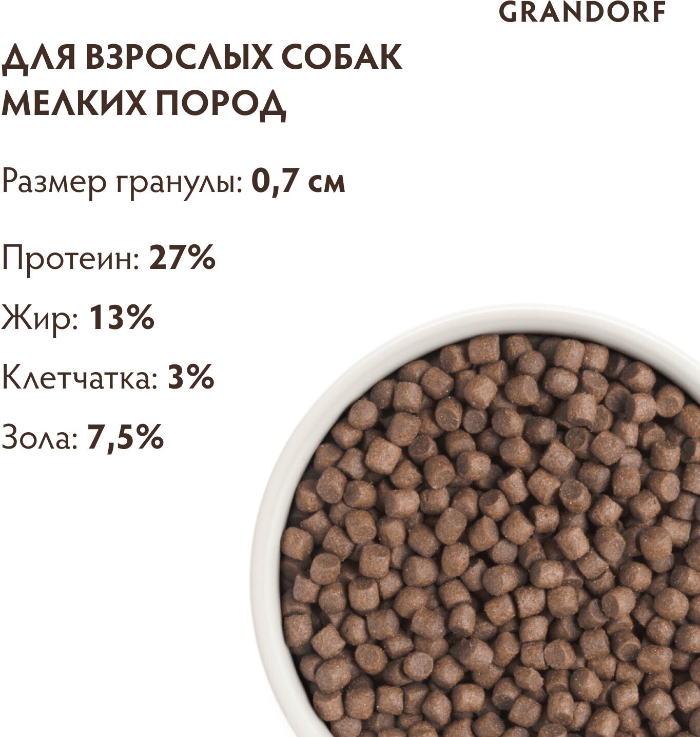 Сервис сравнения цен СкидкаГИД предлагает сравнить цены на товар «GRANDORF Mini Adult Turkey Корм сух.индейка д/собак мелких пород 1кг (50938)»