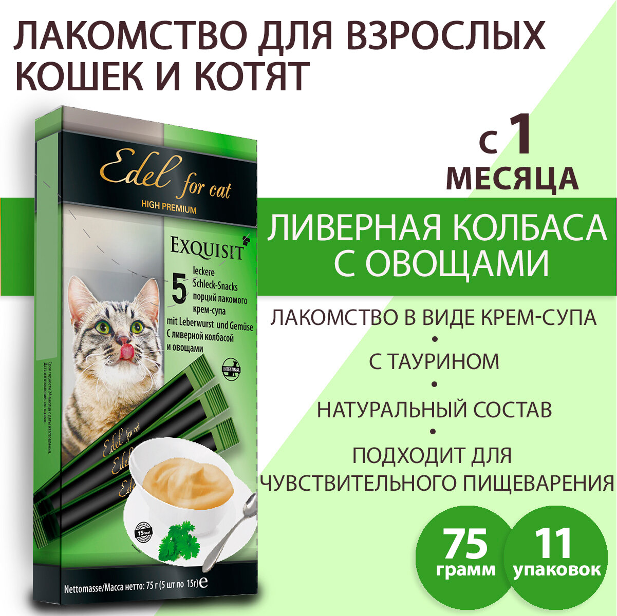 На сегодняшний день товар «EDEL CAT Лакомство Крем-суп ливерная колбасаовощи д/кошек 5шт 75г (1877)» можно купить с кешбеком в 1 магазине: Яндекс.Маркет