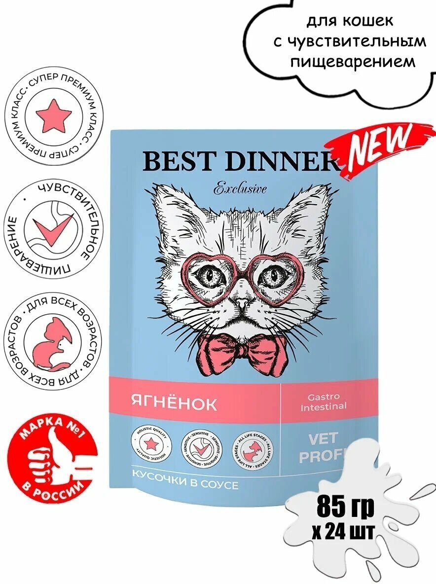 BEST DINNER Exclusive Vet Profi Gastro Intestinal Корм влаж.ягненок кусочки в соусе д/кошек пауч 85г (7444)