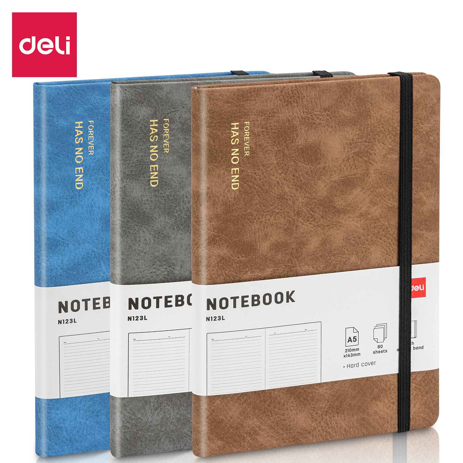 Блокнот Deli EN123LBLUE голубой, A5, 210х143мм, кожа искусственная, 80л, в линейку, твердая обложка