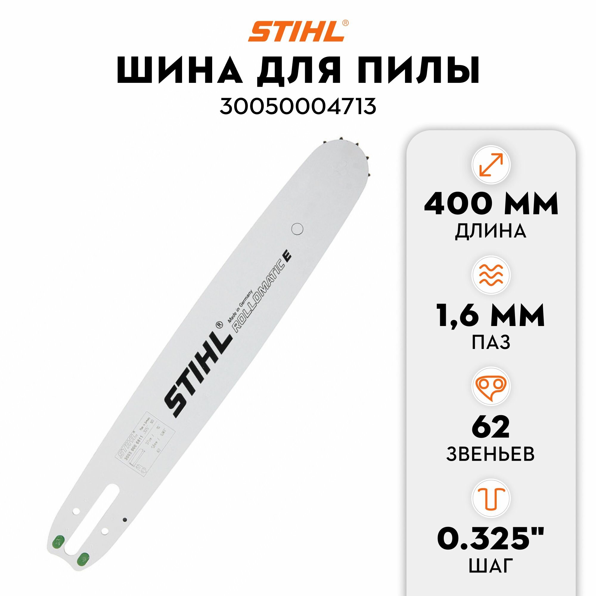 Шина для садовых пил Stihl R 40см/16" 13мм/005" 3/8"P 3005-000-4813