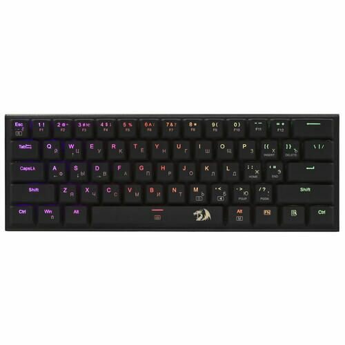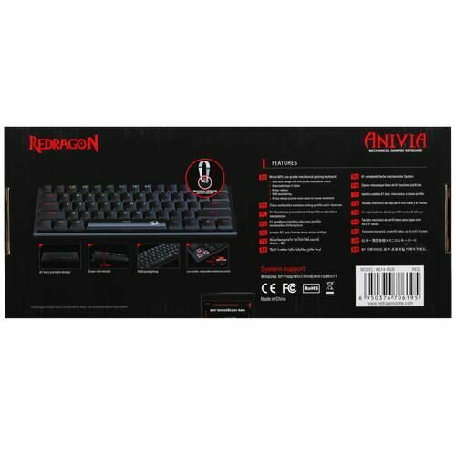 Клавиатура Redragon Anivia – модель компактного форм-фактора, в которой используется 61 клавиша. Линейные механические переключатели Outemu Red обеспечивают высокую точность обработки каждого нажатия пользователя для быстрой реакции в играх. Светодиодная подсветка символов RGB гарантирует комфортное управление в условиях недостаточной освещенности и привлекательный стиль. Клавиатура изготовлена в прочном пластиковом корпусе с влагозащищенной конструкцией. Для подключения Redragon Anivia применяется кабель с разъемом USB.