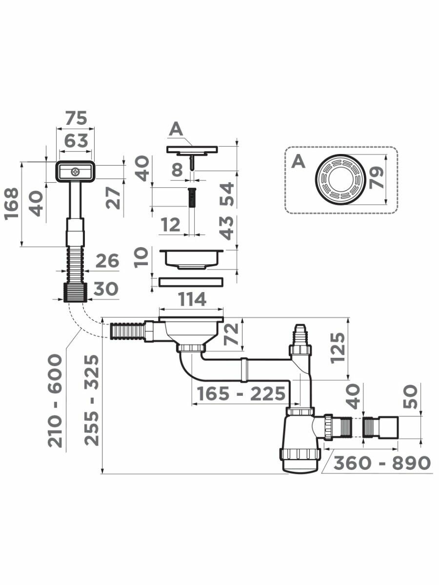 | Вид сифона | Для кухонной мойки с выпуском |