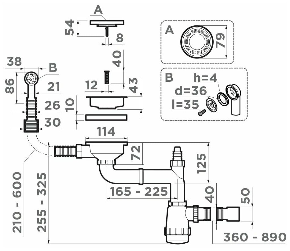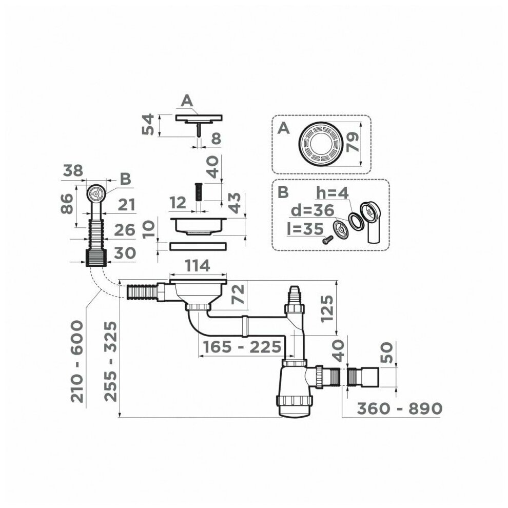 | Вид сифона | Для кухонной мойки с выпуском |