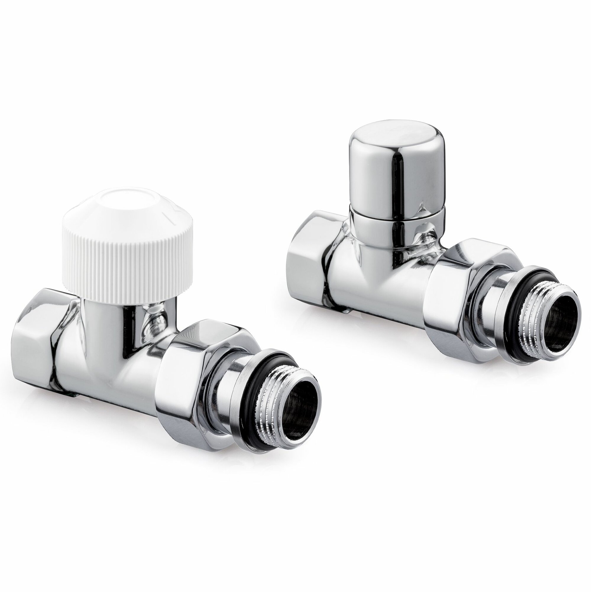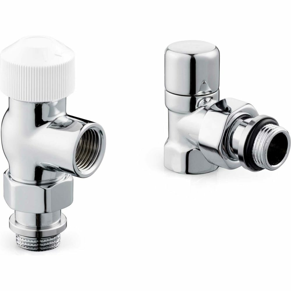 | Комплектация | клапан термостатический осевой М30х1,5 и клапан запорный угловой, 2 латунных хромированных отражателя (Двн=15 мм), 2 хромированных латунных гайки |
