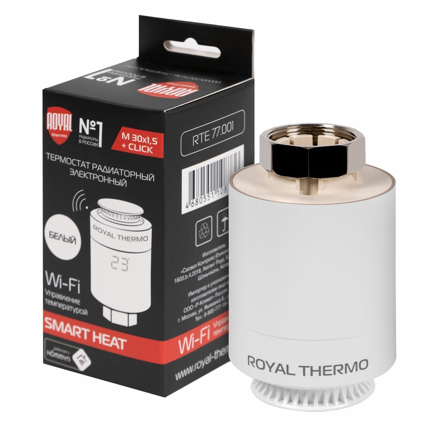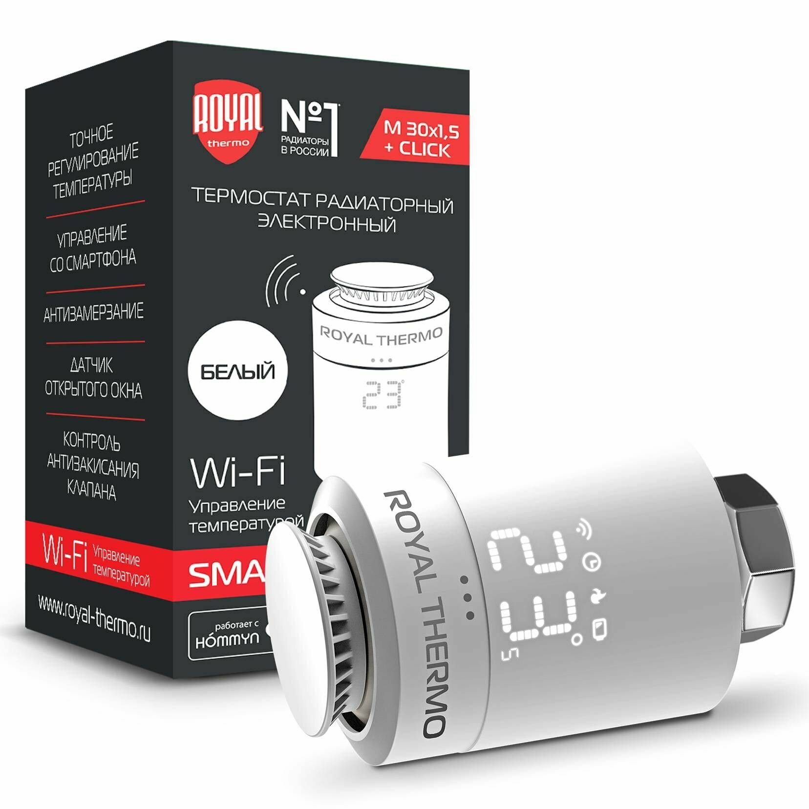 Термостат радиаторный электронный ROYAL THERMO Smart Heat с LED дисплеем и регулятором температуры. Точность установки температуры - 1°С.