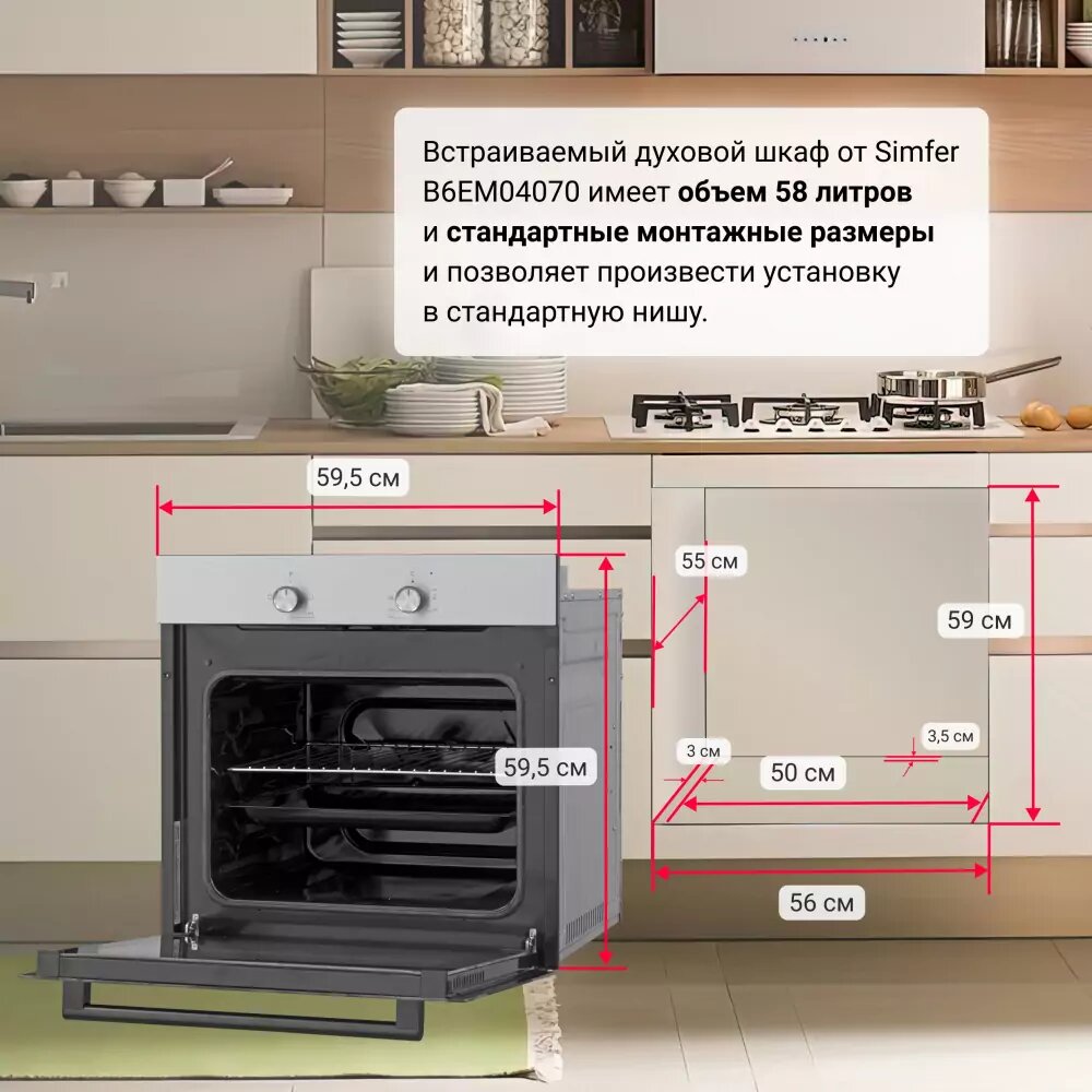 Встраиваемый набор Simfer H60Q40W400, B6EW04070 - комплект, состоящий из газовой варочной поверхности и электрического духового шкафа, созданный для того, чтобы облегчить жизнь каждой хозяйке в приготовлении самых разнообразных блюд. И для тех, кто мечтает о технике, гармонично сочетающейся с элементами кухни. Для того, чтобы воплотить свои кулинарные фантазии предусмотрены четыре газовые конфорки разные по диаметру и мощности пламени в них, располагающиеся на рабочей поверхности из эмалированной стали. Удобное управление и функция электроподжиг значительно упрощает работу с панелью. А разнообразные режимы в духовом шкафу дадут вам возможность выбора оптимального способа приготовления для каждого блюда. Контролировать этот процесс, благодаря освещению камеры, вы сможете, не открывая дверцу духовки. Готовьте вкусную еду и проводите семейные ужины в комфортной и уютной обстановке!