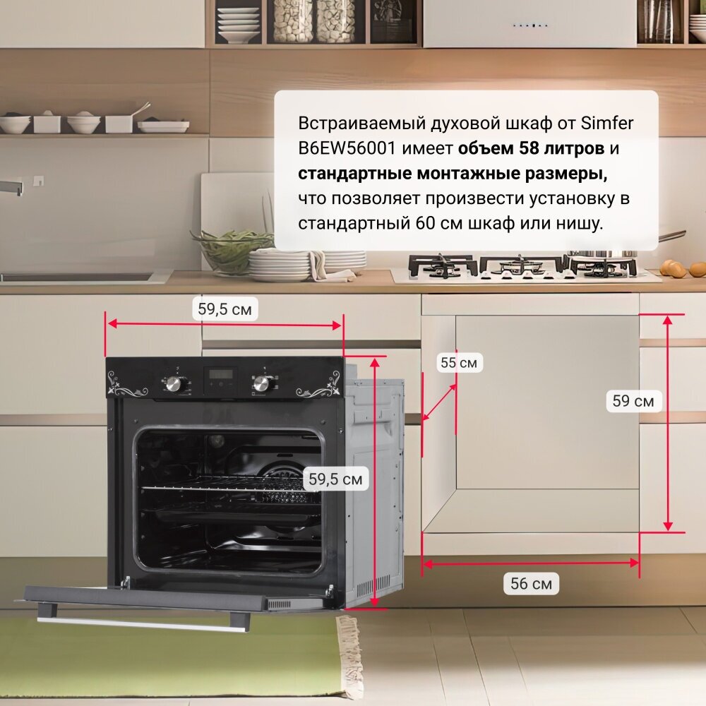 | Габариты духовки (ВxШxГ) (см) | 59.5x59.5x56.5 |