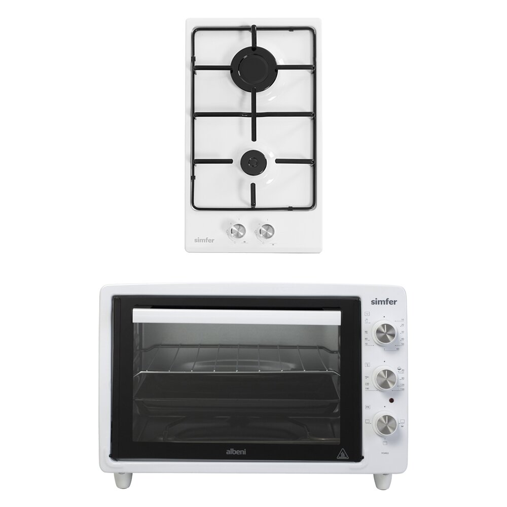 Встраиваемый набор Simfer H30V20W420, M3402 - комплект, состоящий из газовой варочной поверхности и настольного электрического духового шкафа, созданный для того, чтобы облегчить жизнь каждой хозяйке в приготовлении самых разнообразных блюд. И для тех, кто мечтает о технике, гармонично сочетающейся с элементами кухни. Для того, чтобы воплотить свои кулинарные фантазии предусмотрены две газовые конфорки разные по диаметру и мощности пламени в них, располагающиеся на рабочей поверхности из эмалированной стали. Удобное управление и функция электроподжиг значительно упрощает работу с панелью. А разнообразные режимы в настольном духовом шкафу дадут вам возможность выбора оптимального способа приготовления для каждого блюда. Контролировать этот процесс, благодаря освещению камеры, вы сможете, не открывая дверцу духовки. Готовьте вкусную еду и проводите семейные ужины в комфортной и уютной обстановке!