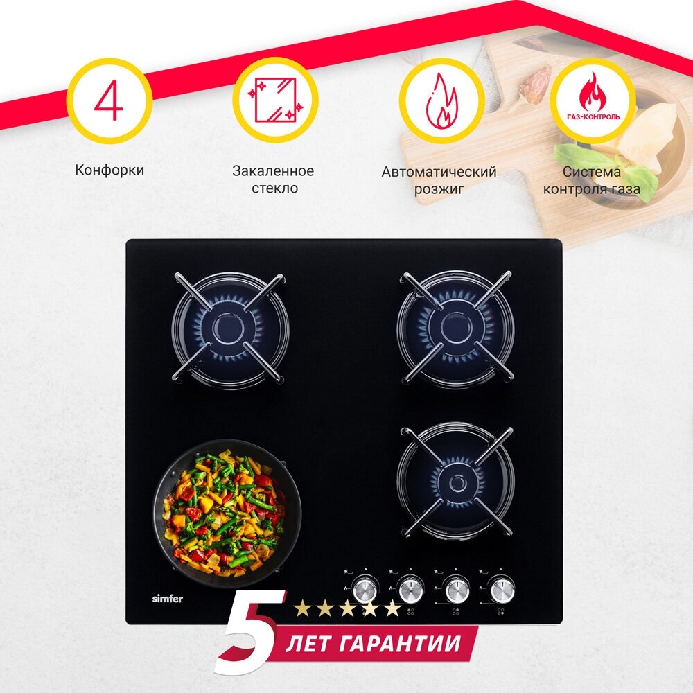 Газовая варочная поверхность Simfer H60N40W570 с газ-контролем