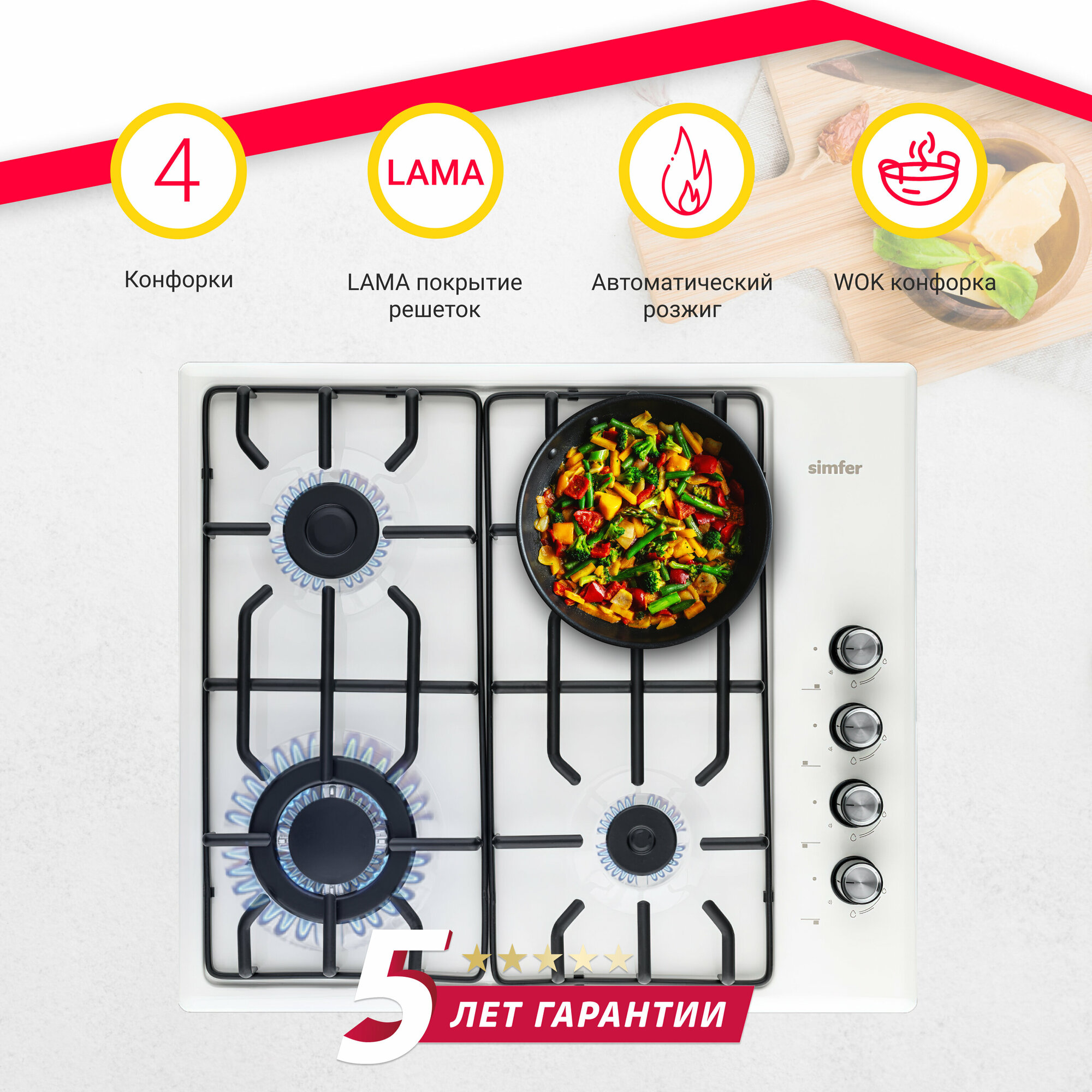 На сегодняшний день товар «Газовая варочная поверхность Simfer H60Q41B571 WOK-конфорка газ-контроль» можно купить с кешбеком в 1 магазине: Яндекс.Маркет