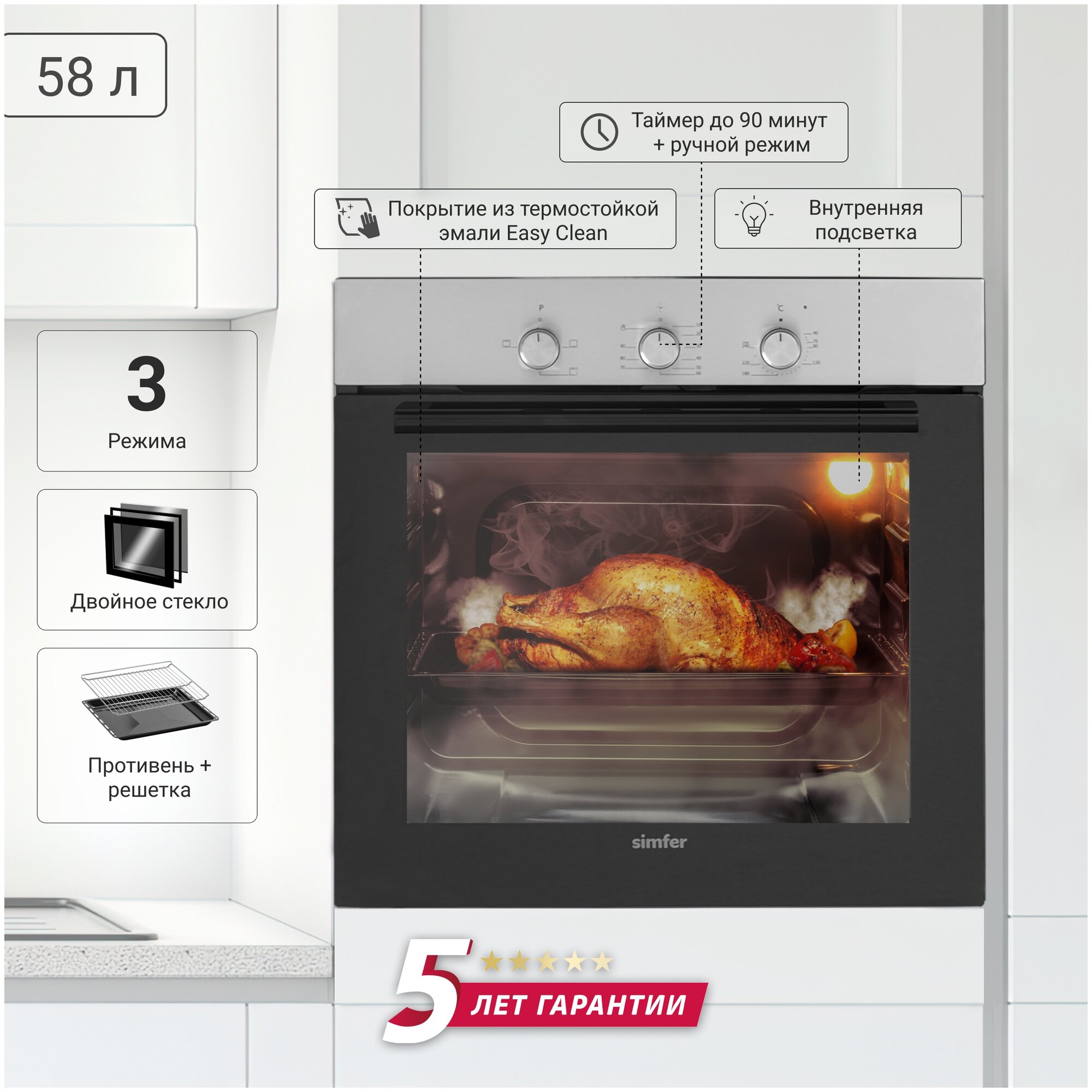 | Объем духовки, л | 58 л |