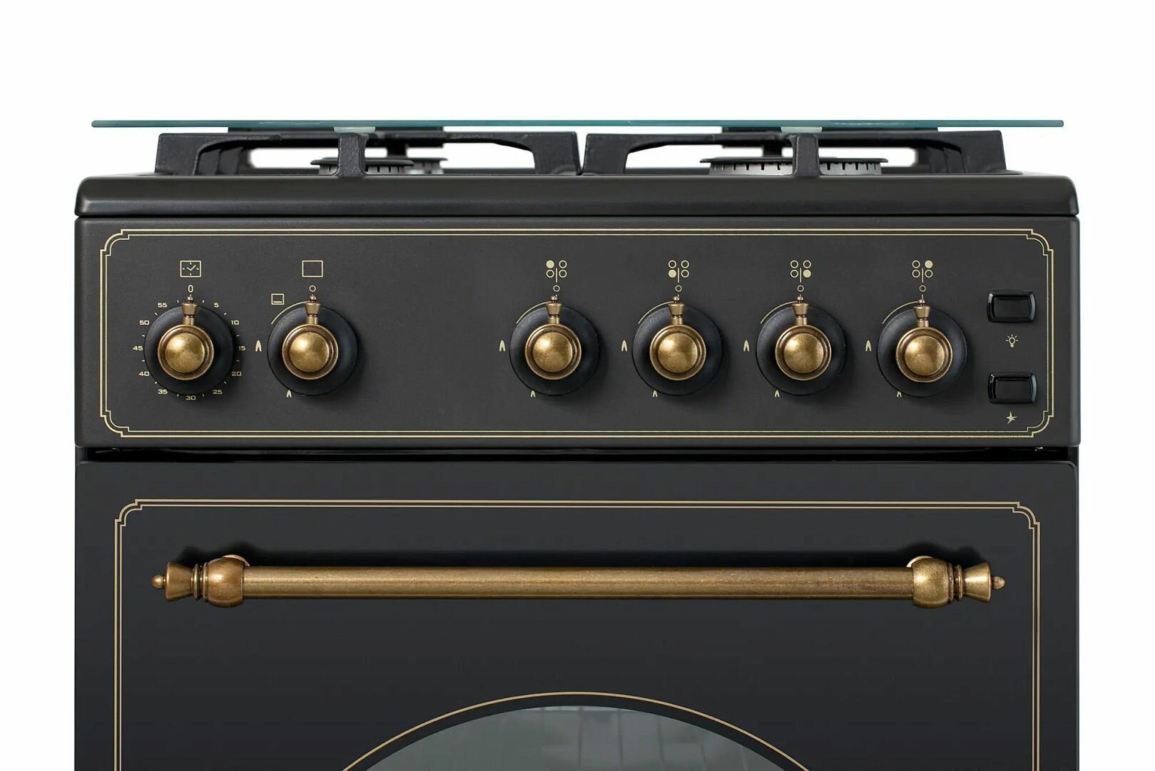 Плита оснащена двумя стеклами на дверце духовки, что обеспечивает безопасность и предотвращает ожоги.