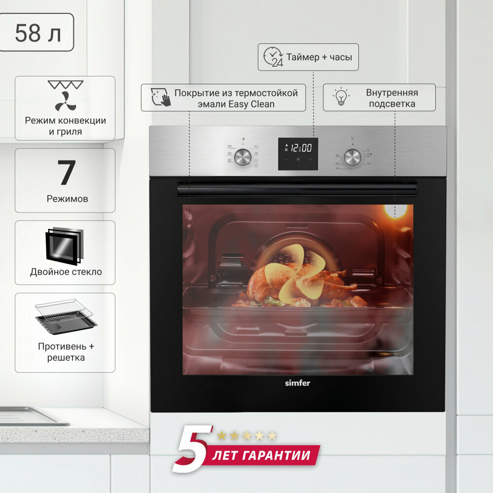 | Комплектация | стандартный противень с антипригарным покрытием, хромированная решётка |