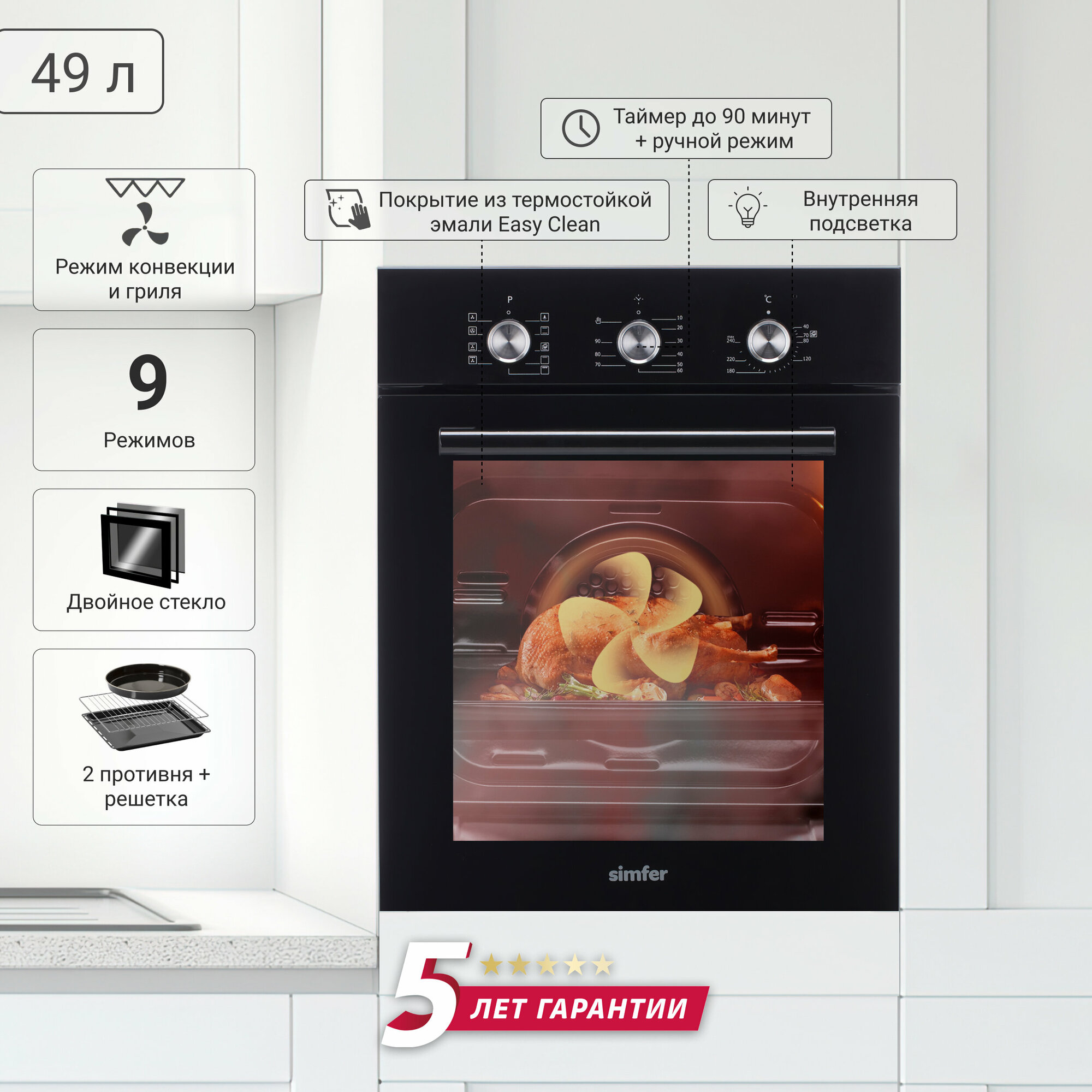 | Объем духовки, л | 49 л |