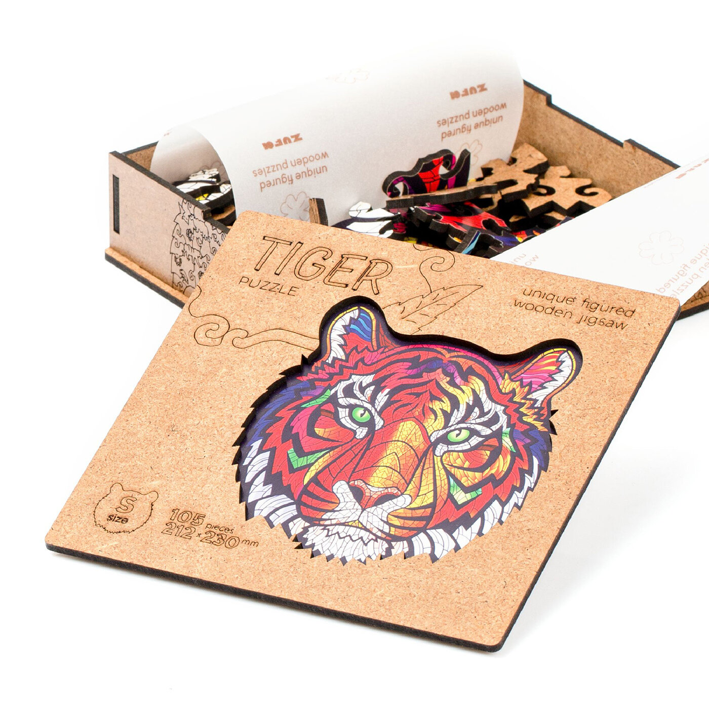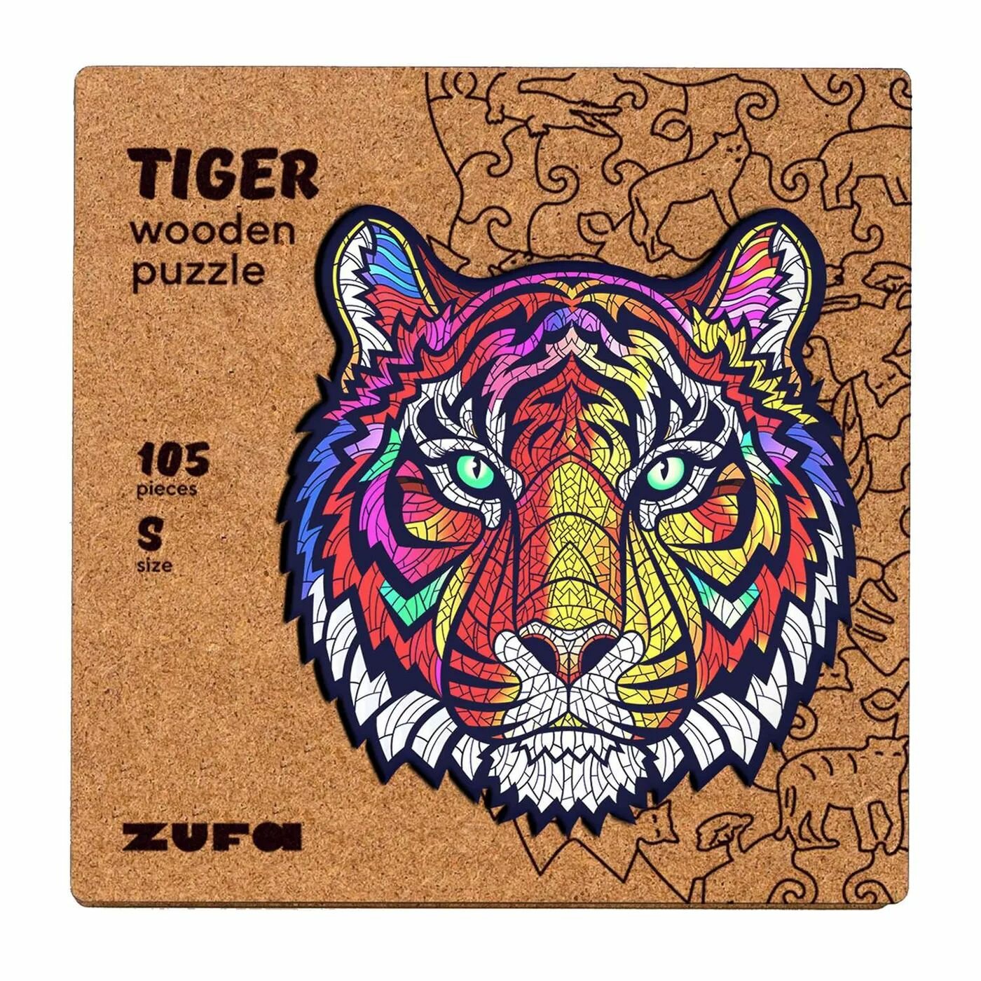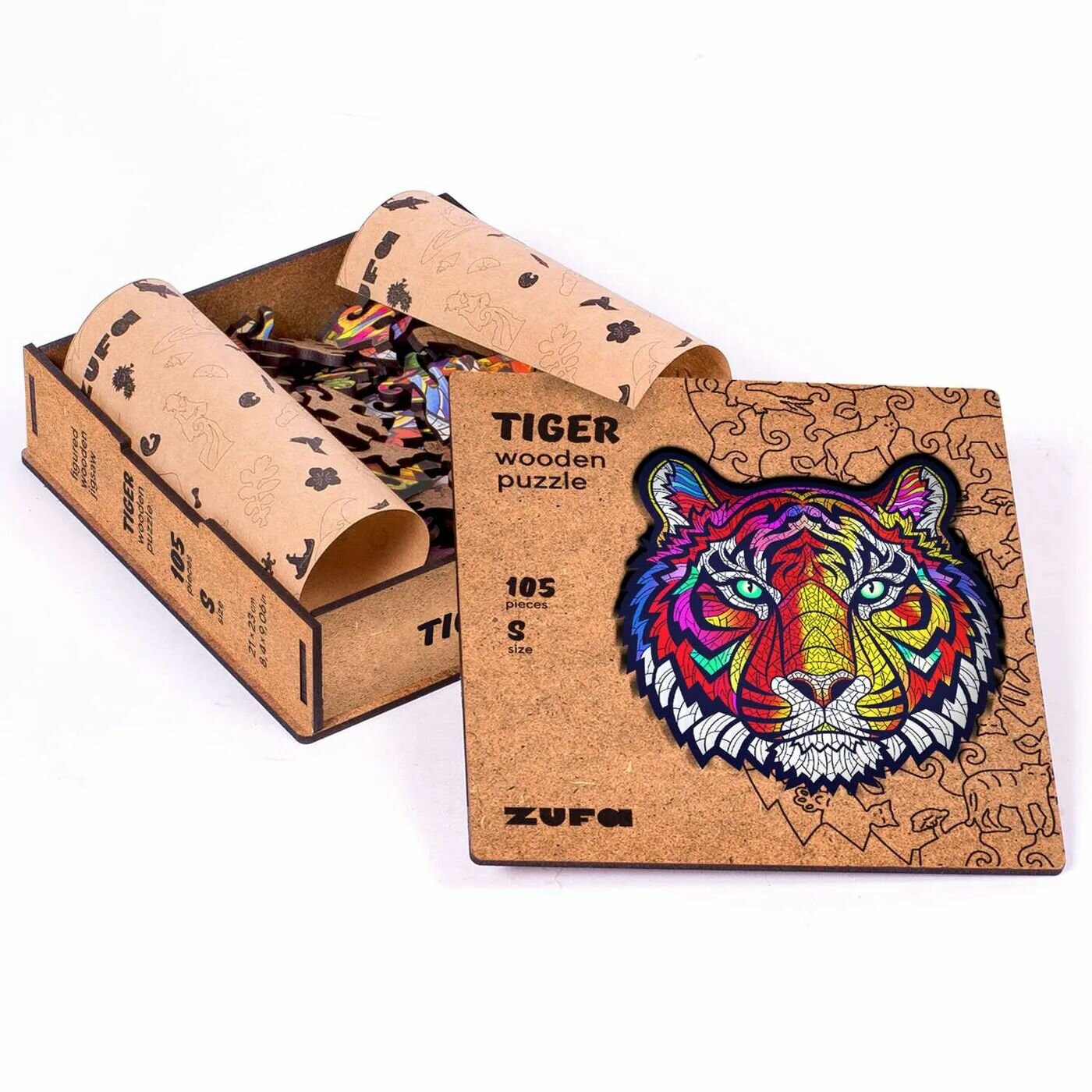 Деревянный пазл с двухслойной крышкой Тигр 105 деталей Zufa