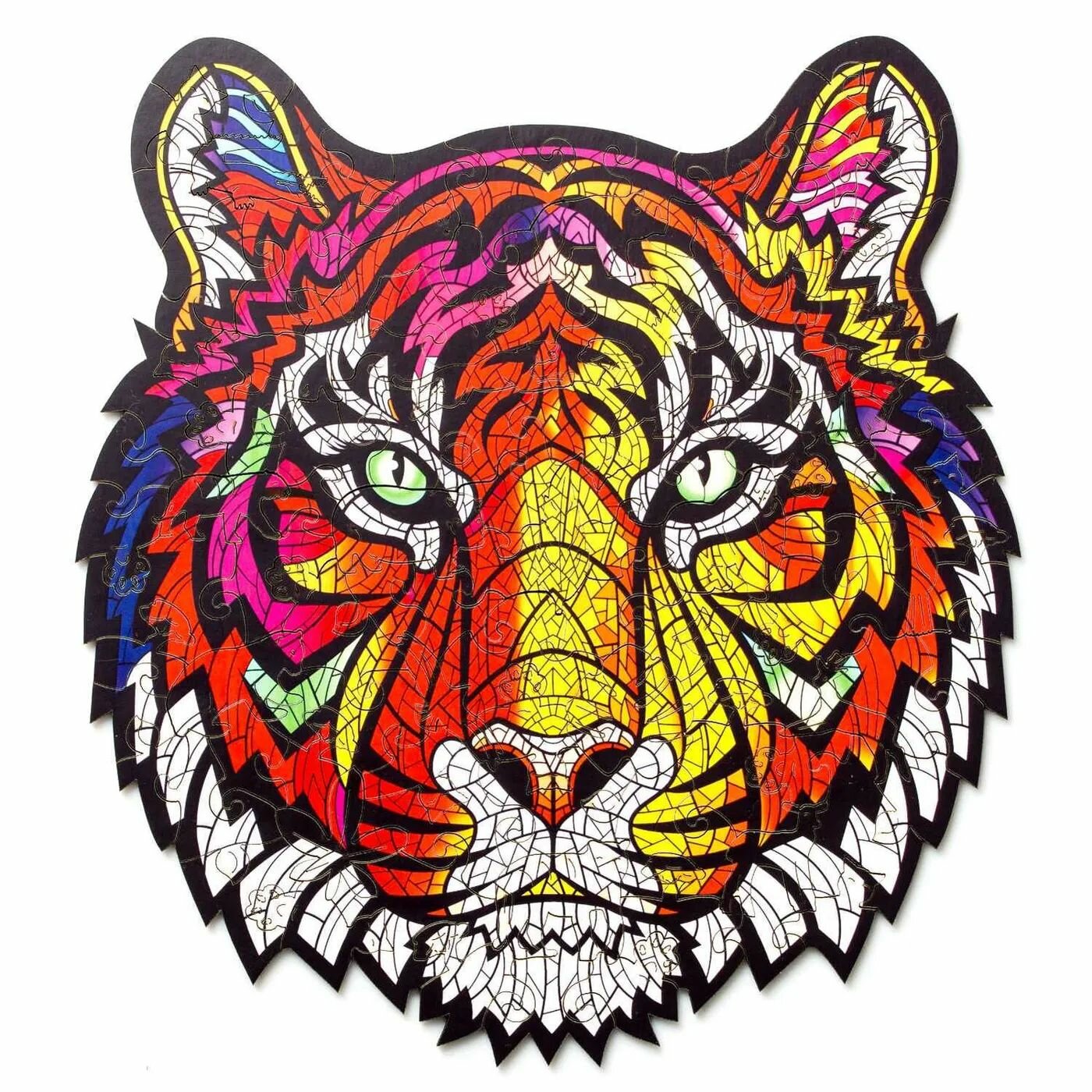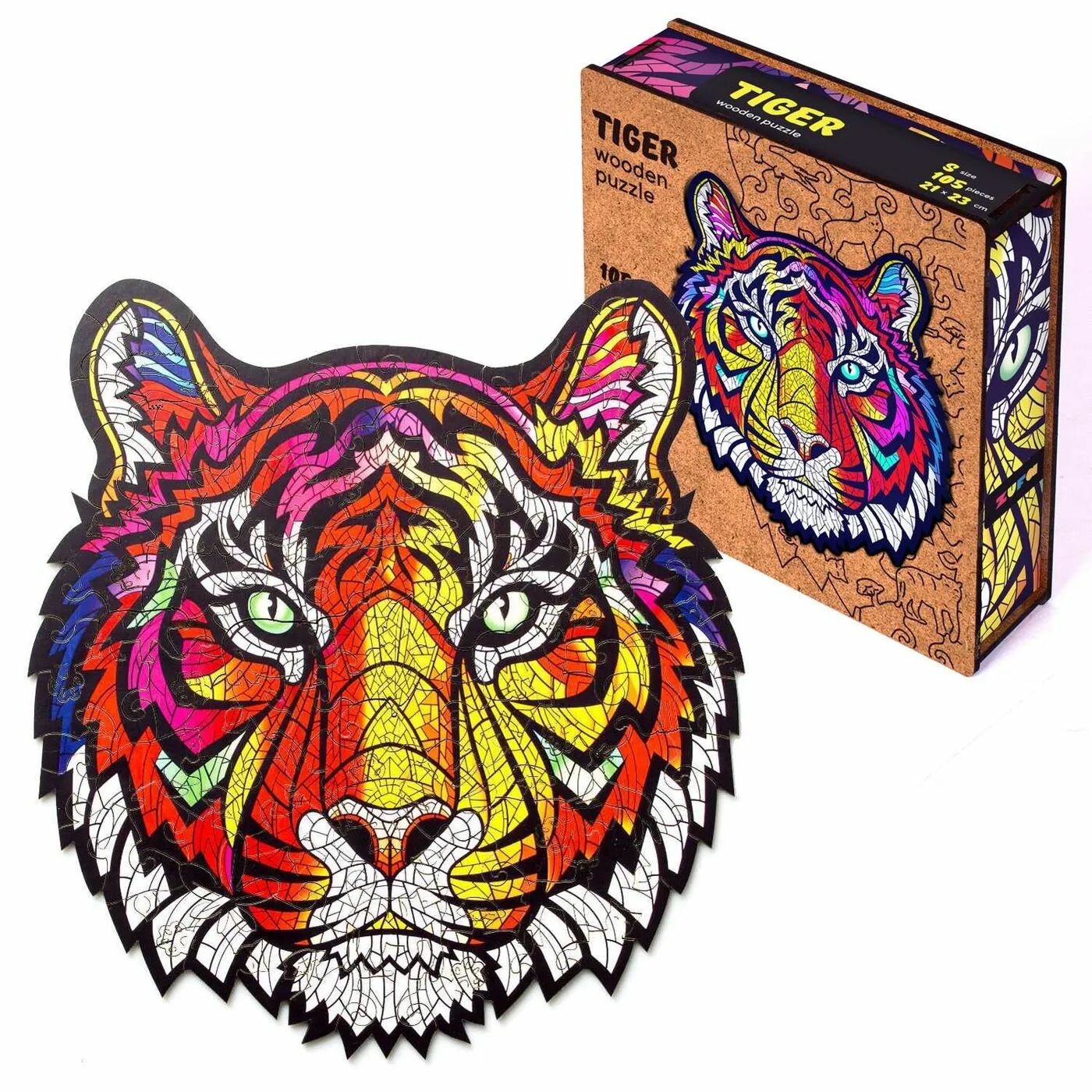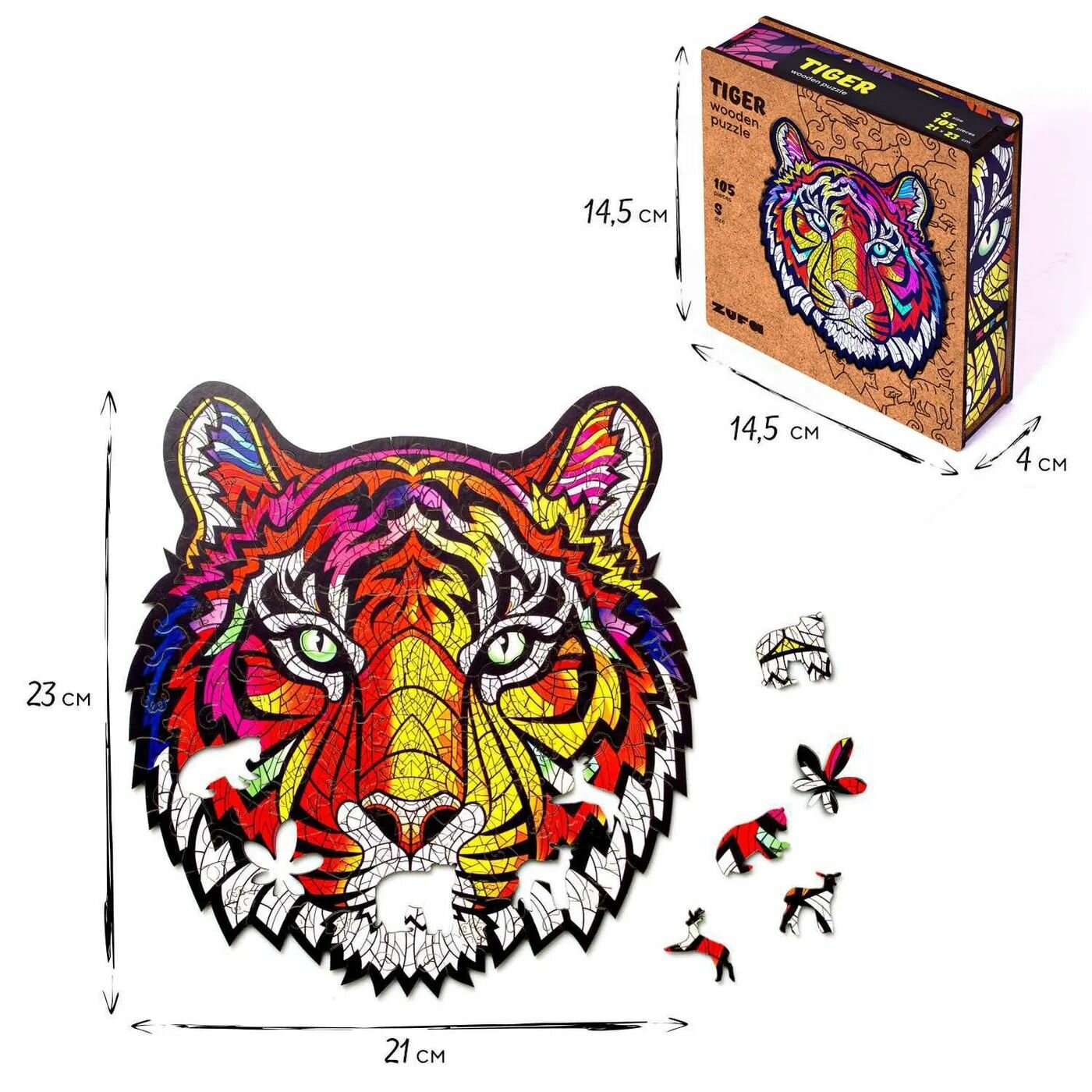 Деревянный пазл с двухслойной крышкой Тигр 105 деталей Zufa
