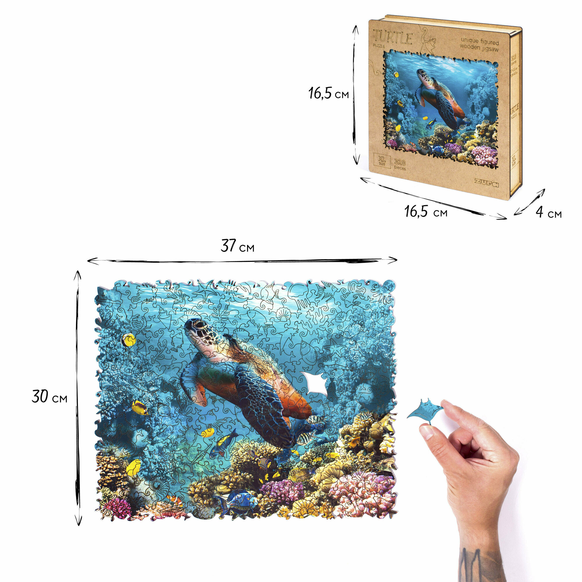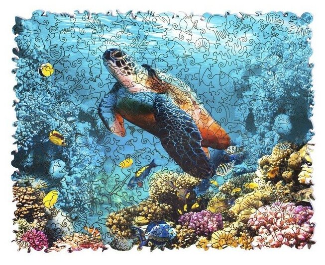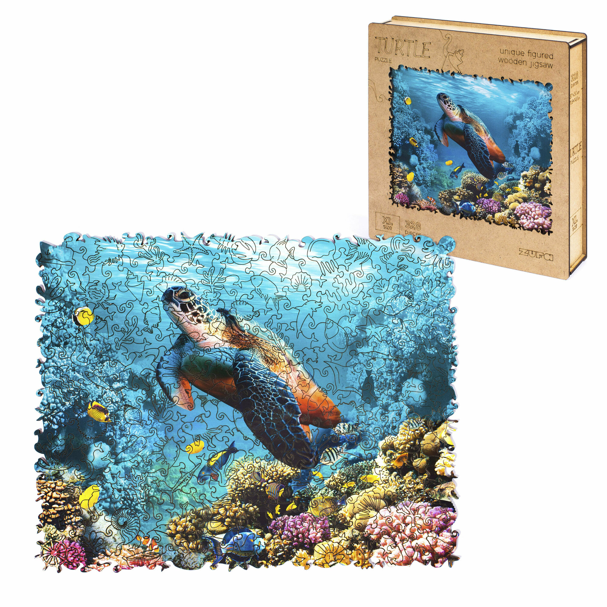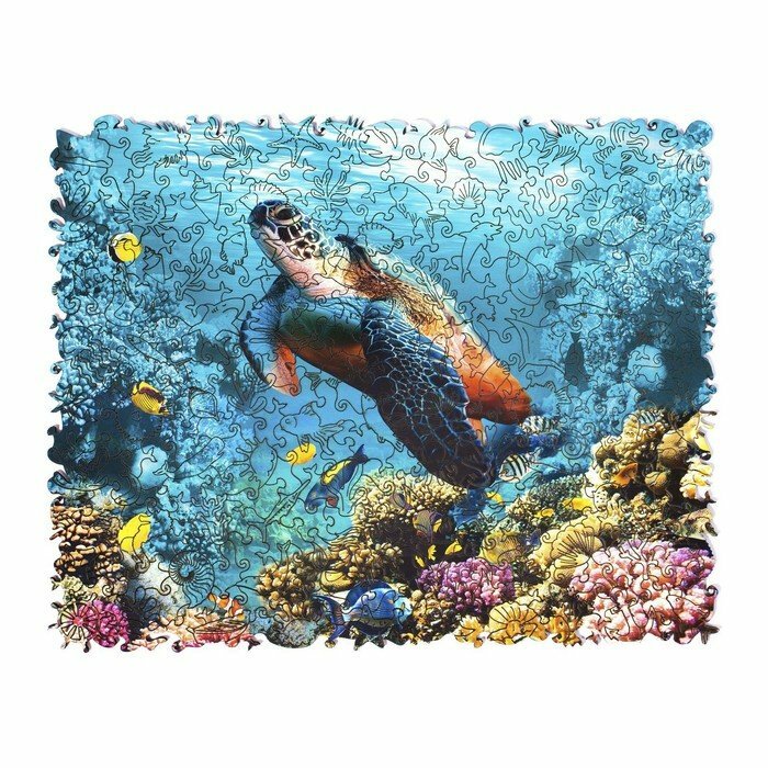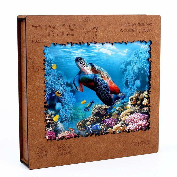 Деревянный пазл с двухслойной крышкой Черепаха 328 деталей Zufa
