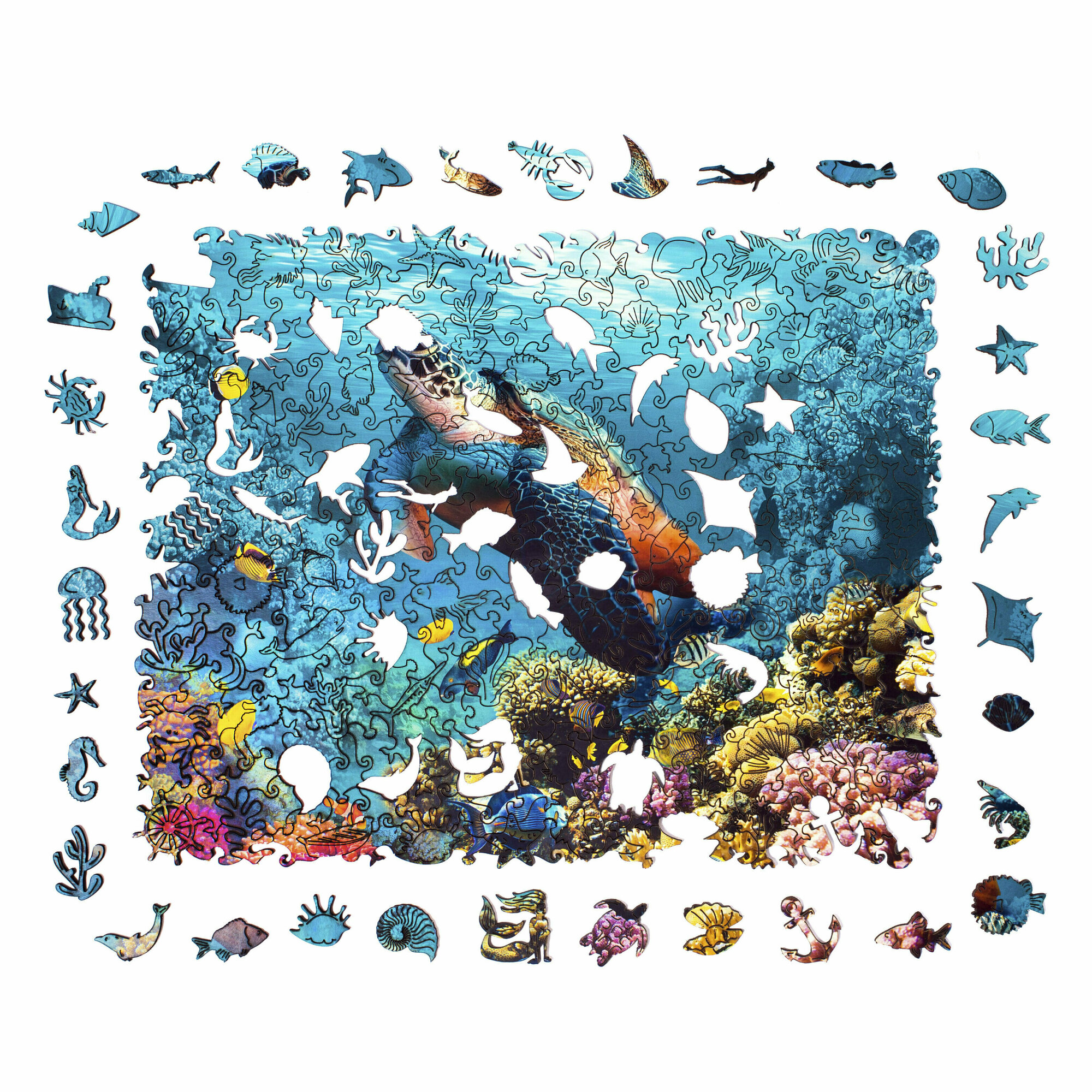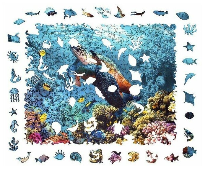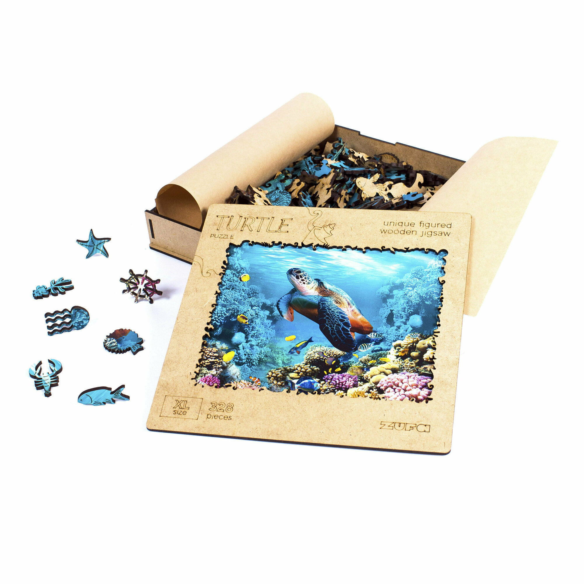 Деревянный пазл с двухслойной крышкой Черепаха 328 деталей Zufa