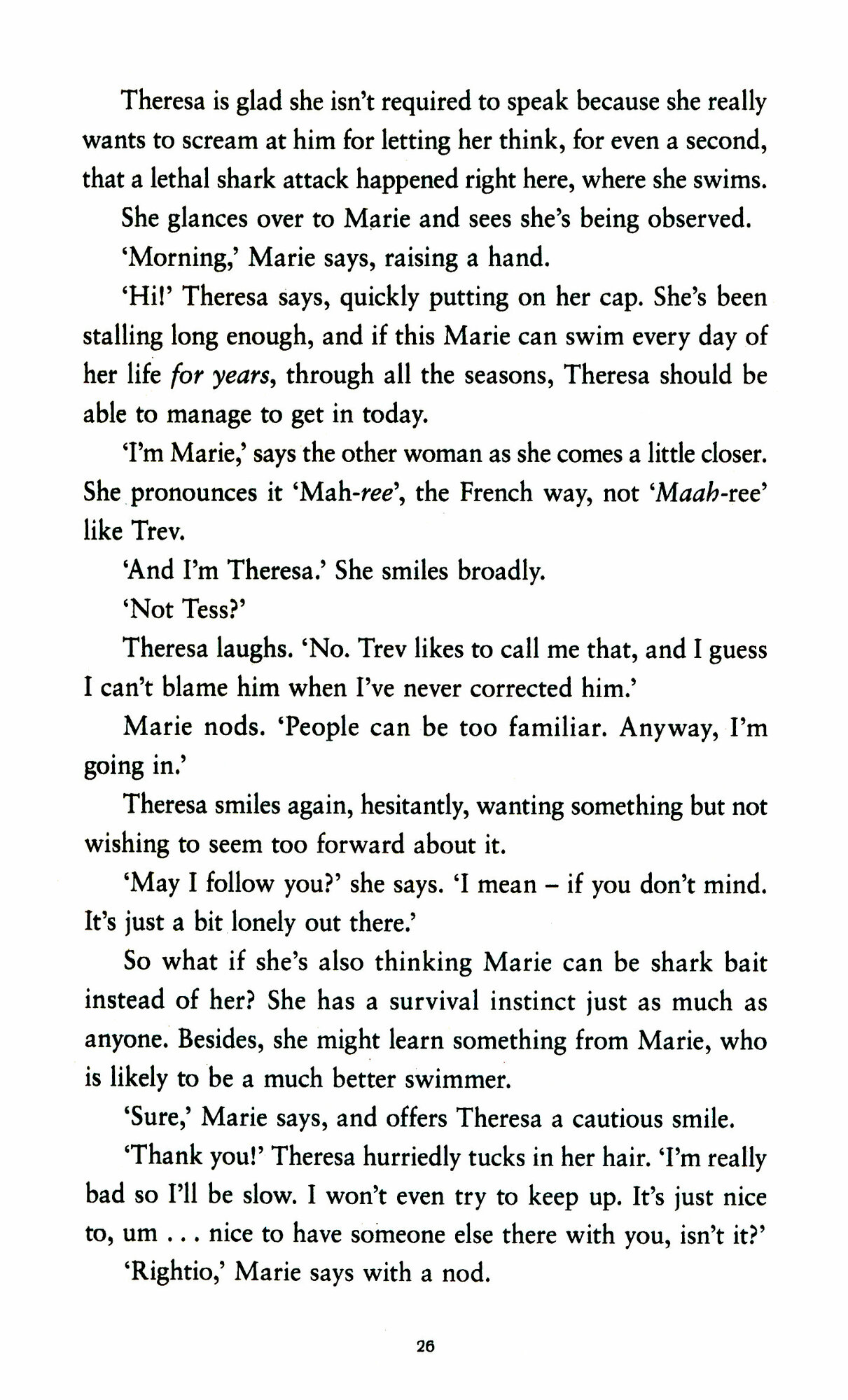 Housewife Theresa wants to get fit; she also wants a few precious minutes to herself. So at sunrise each day she strikes out past the waves.