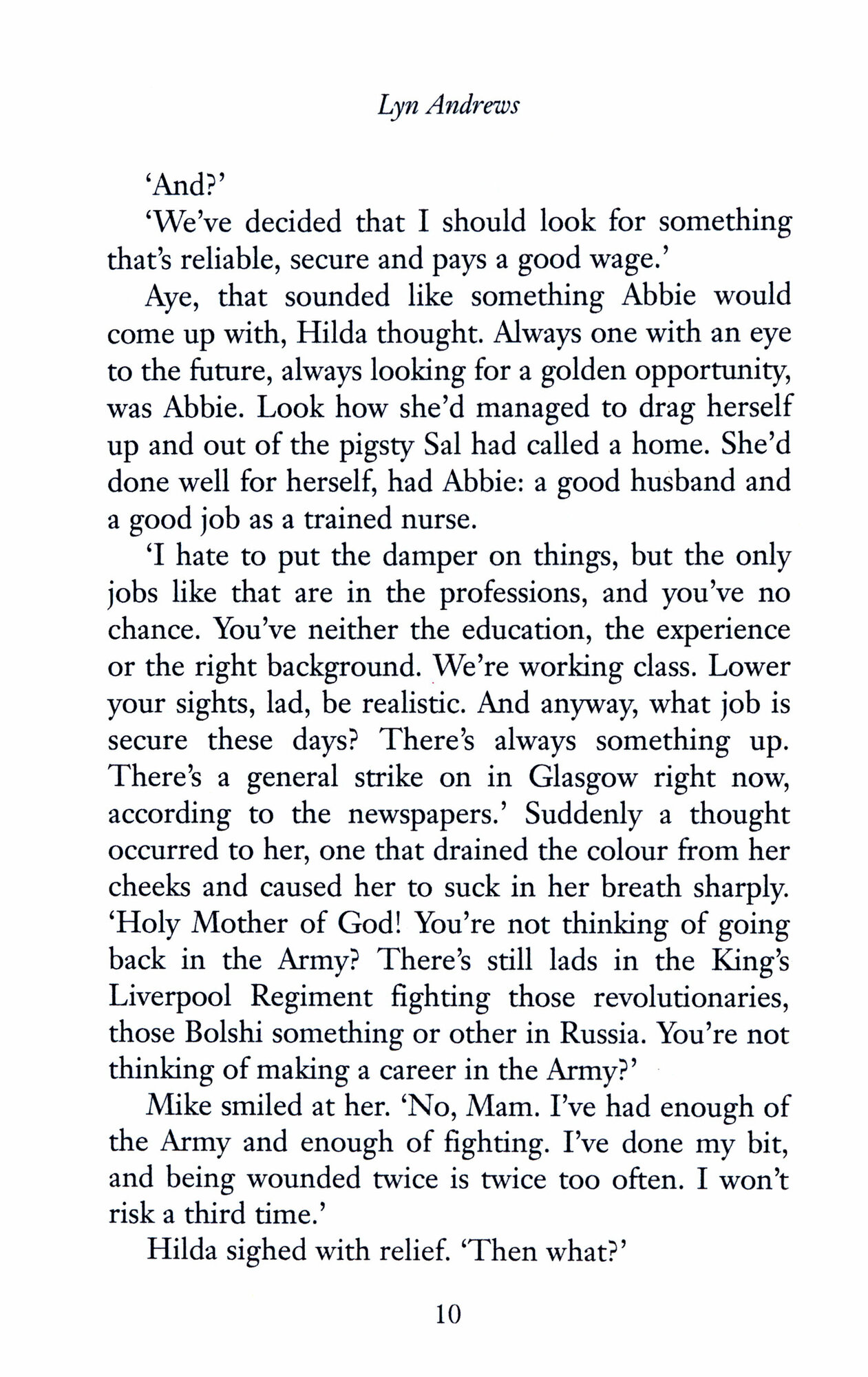 The Great War had ended and Scotland Road was left to count the cost. Many young men had not come back; those who had would never be the same again. Dee Chatterton and Abbie Kerrigan had seen the horrors of war for themselves as nurses in military hospitals abroad. While Abbie settled down in the familiar surroundings of Scotland Road, for others, different horizons beckoned. Dee went to live in Canada, while their friend Hannah Harvey became personal nurse to none other than Richard, seventh Earl of Ashenden, badly injured in the war. Moving to the splendours of Ashenden Hall was to bring her unimagined happiness, but also the heartache of being separated for ever from her family and friends.