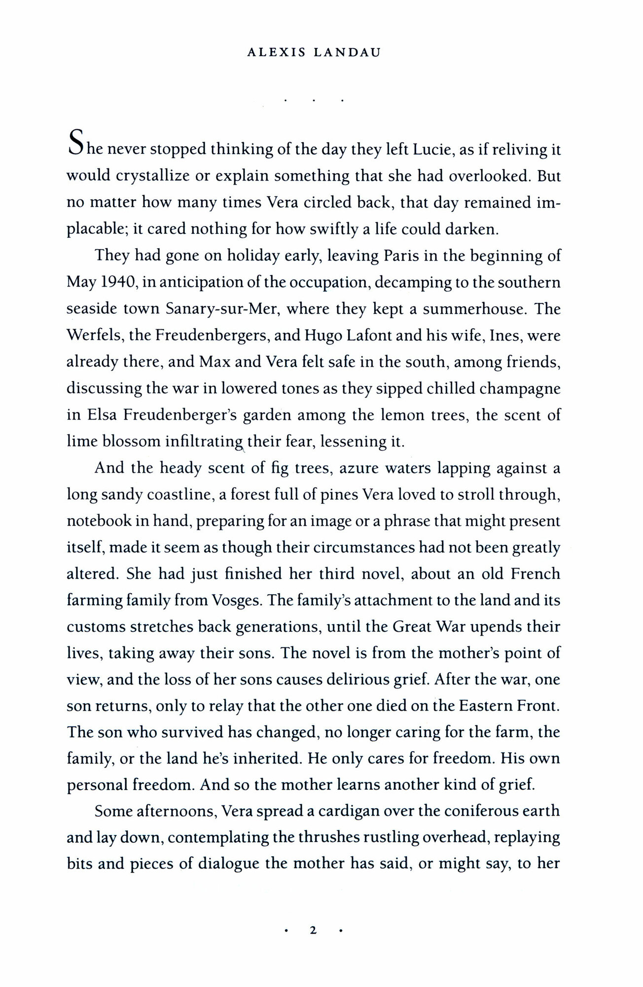 On the cusp of World War II, a young mother is faced with an impossible choice. Vera is a Russian Jewish emigre to France, newly wed - but her marriage cannot protect her or her four-year-old-daughter, Lucie, once the Nazis occupy the country.