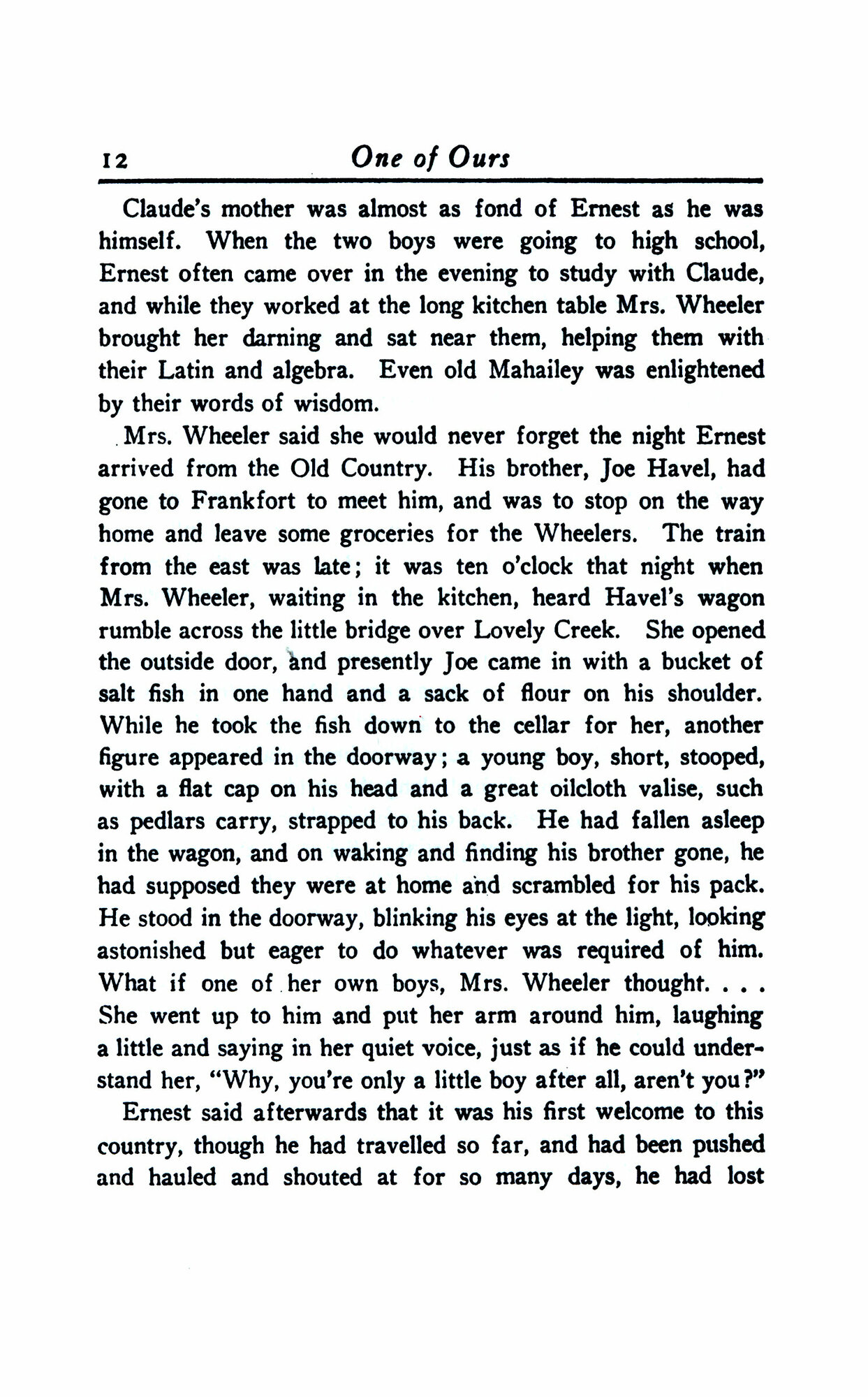 Since childhood, Claude Wheeler has believed that ‘something splendid’ would restore the faith he had lost in modern life and the personal compromises and materialism that it brings. The calls of the First World War offers escape from his prosperous farm in Nebraska and marriage of convenience and brings the opportunity to fight for a worthy cause. In action in France he discovers the faith and happiness he has yearned, but not without the heavy cost that war inevitably brings. Willa Cather looks back at the pioneering myth and forward to a new kind of modern heroism through One of Ours, a novel championing democracy.