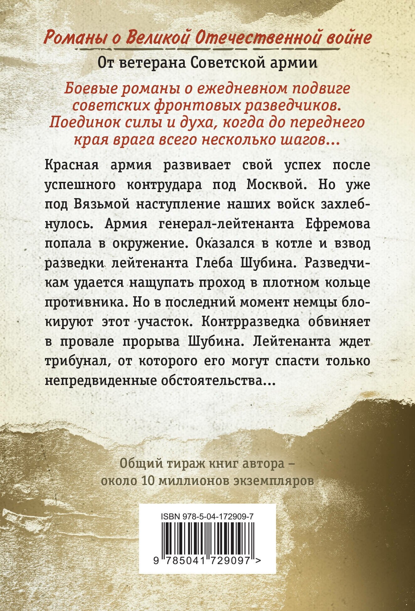 Красная Армия развивает свой успех после успешного контрудара под Москвой. Но уже под Вязьмой наступление наших войск захлебнулось. Армия генерал-лейтенанта Ефремова попала в окружение. Оказался в котле и взвод разведки лейтенанта Глеба Шубина. Разведчикам удается нащупать проход в плотном кольце противника. Но в последний момент немцы блокируют этот участок. Контрразведка обвиняет в провале прорыва Шубина. Лейтенанта ждет трибунал, от которого его могут спасти только непредвиденные обстоятельства…