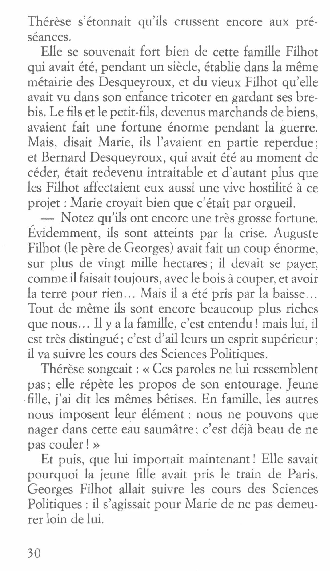 «Je n’ai pas voulu donner dans La Fin de la nuit une suite a Therese Desqueyroux, mais le portrait d’une femme a son declin, que j’avais peinte deja du temps de sa jeunesse criminelle. Il n’est aucunement necessaire d’avoir connu la premiere Therese pour s’interesser a celle dont je raconte ici le dernier amour.»