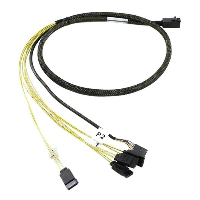 MiniSAS HD to 4xSATA + SideBand, оболочка ПВХ, экранирование, позолоченные контакты, круглая форма сечения, длина кабеля 0.6 м.