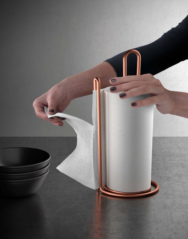 Подставка-держатель для кухонных полотенец MY-ROLL Copper.При производстве использована свхнология двойного покрытия Polytherm, которое не электризуется, не ржавеет, не токсично, легко моется, не царапается, отталкивает пыль. 4 года гарантии на покрытие.
