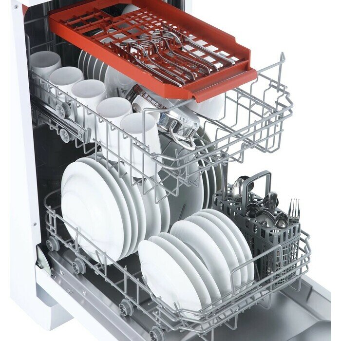 Модель DW 4562 имеет компактные габариты, отличные показатели потребления воды и электричества. Однако это не влияет на производительность и количество комплектов посуды. Набор режимов включает ускоренные и экономичные, для которых нужно еще меньше ресурсов. С конденсационной сушкой любимая посуда дольше сохранит свою красоту. Устройство не требует подачи горячей воды, нагрев происходит внутри него. Это важное преимущество, поскольку холодная водопроводная вода чище и ее не отключают в летнее время. Посудомоечная машина оснащена системой AquaBlock, которая поможет избежать протечек, и функцией отложенного старта до 9 часов, благодаря чему посуду можно мыть даже ночью. Кроме того, модель работает тихо, поэтому вам не придется переживать о том, что шум потревожит чей-то сон.