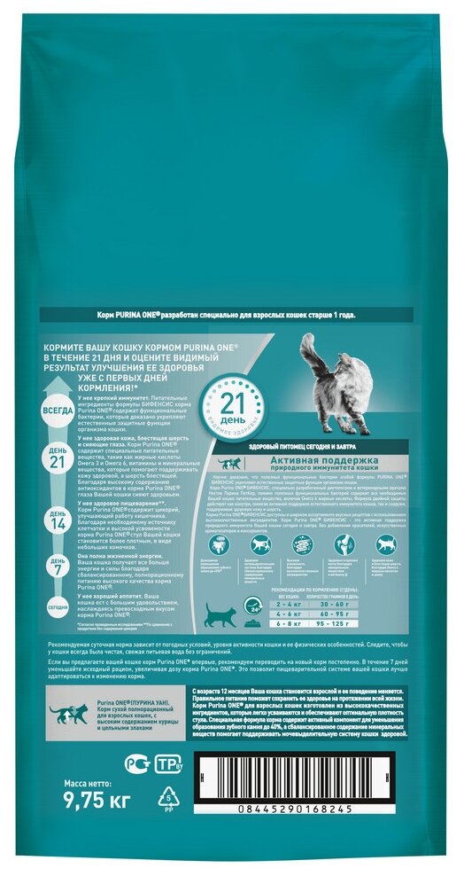 Эксперты Purina разработали сухие корма для взрослых кошек с учетом потребностей Вашего питомца. Рацион с высококачественными ингредиентами поможет обеспечить запас прочности для вашего любимца на долгие годы. Высококачественный белок обеспечивает энергией и помогает поддерживать оптимальный вес. Естественный пребиотик из корня цикория благотворно влияет на систему пищеварения. Благодаря текстуре гранул сухой корм позволяет очищать зубы от бактериального налета. Незаменимые жирные кислоты Омега 3 и 6 и цинк делают шерсть здоровой и блестящей. Сухой корм для кошек Purina One не содержит искусственных красителей, ароматизаторов и консервантов. Курица или говядина высокого качества - источник белка и отличного вкуса.