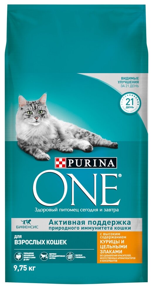 Корм Purina One корм для взрослых кошек с курицей - настоящее лакомство для кошек и котов любых пород. Все в нем сбалансированно, нет вредных красителей и консервантов. На запах - натурально, не навязчиво. Аппетит просыпается всегда на корм у котика, все с удовольствием съедает, сытый и счастливый.