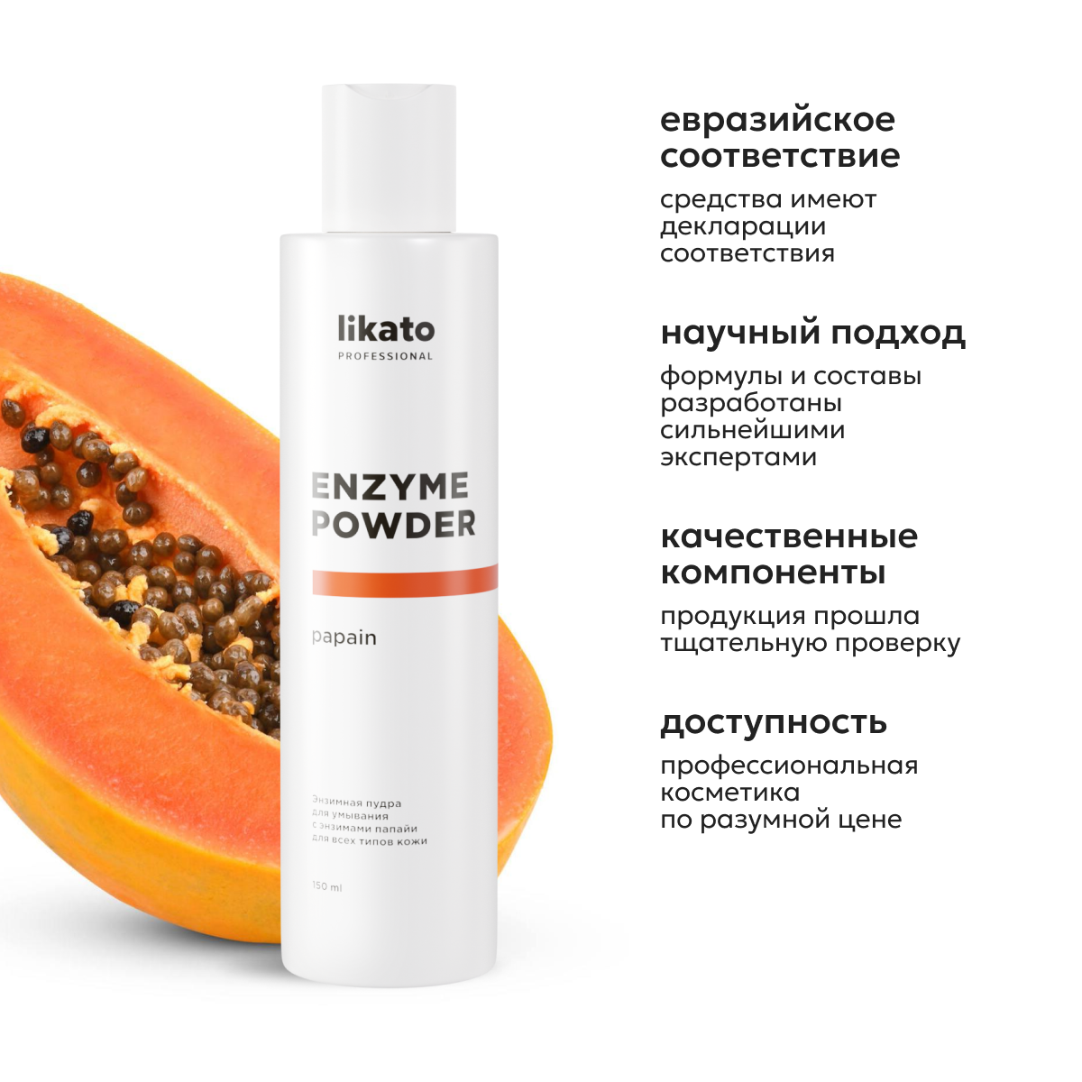 LIKATO PROFESSIONAL Пудра энзимная для умывания с энзимами папайи для всех типов кожи / Likato professional 150 мл (4603784469313)