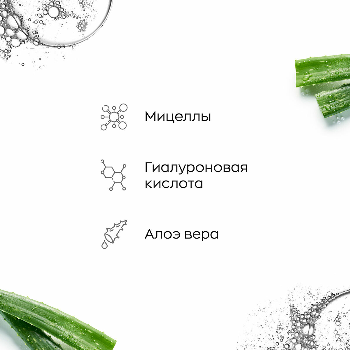Очищает без раздражения, удаляет макияж одним движением. Успокаивает и глубоко увлажняет кожу, выравнивает тон. Мицеллярная вода мягко удаляет макияж, загрязнения и излишки себума, придает коже ощущение чистоты и комфорта. Гипоаллергенно, не содержит красителей и отдушек. Гиалуроновая кислота и другие ухаживающие компоненты дарят коже увлажненность, упругость и эластичность, предупреждают преждевременное старение.