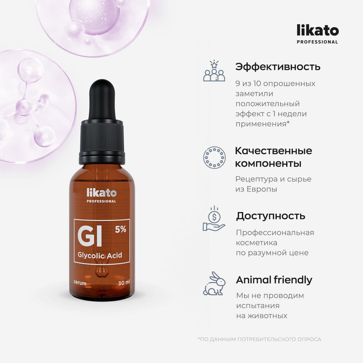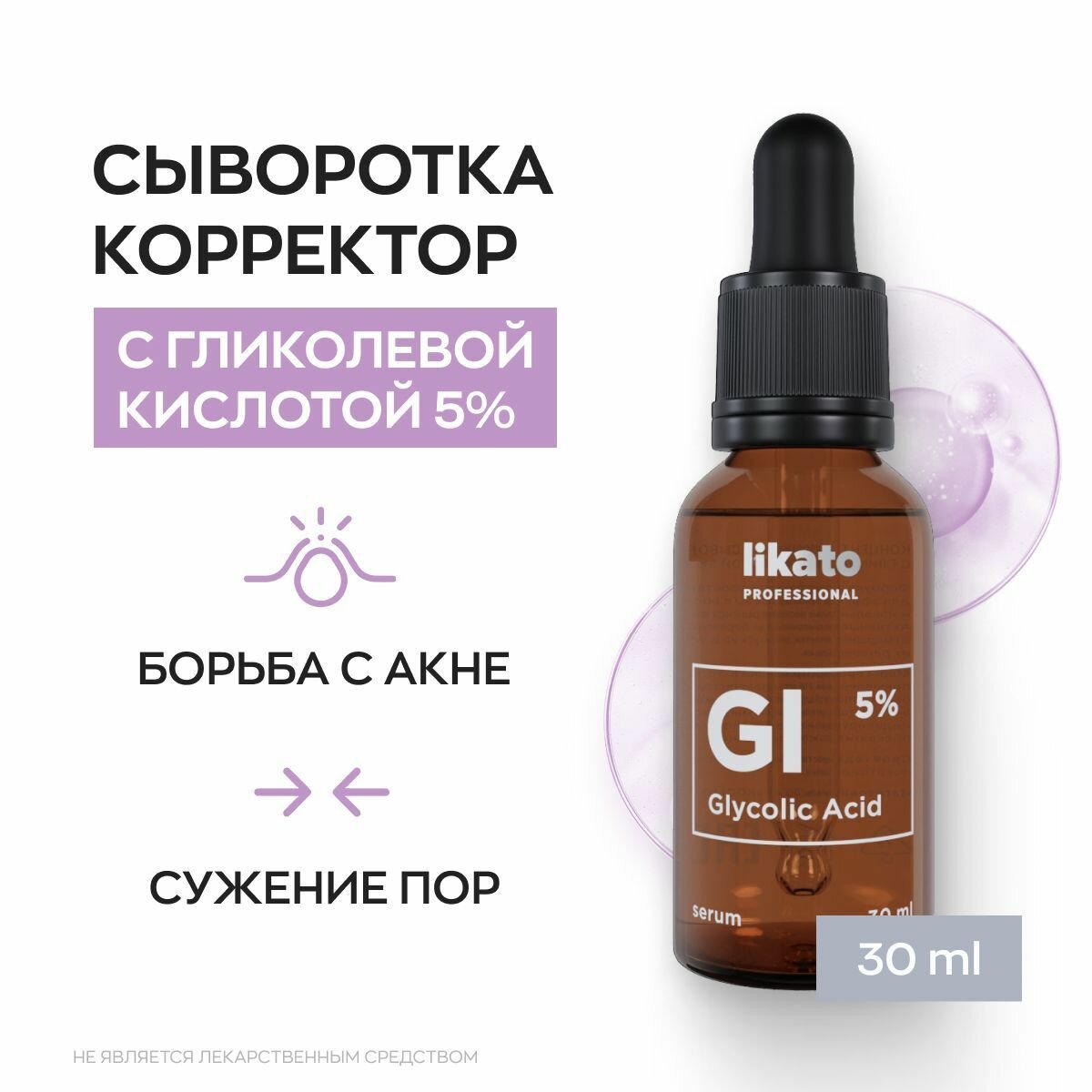 LIKATO PROFESSIONAL Сыворотка-корректор концентрированная с гликолевой кислотой 5% / Likato 30 мл (4603784469542)