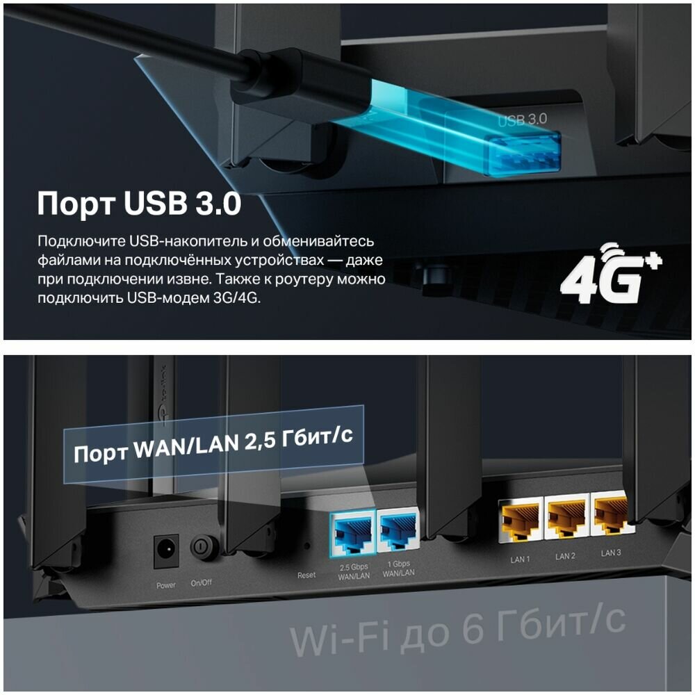 | Дополнительная информация | Wi-Fi роутер TP-Link Archer AX80 оснащен 4-ядерным процессором и 512 МБ оперативной памяти, что исключает малейшие задержки. Конфигурацией предусмотрено 8 антенн для усиления сигнала. Через соответствующие разъемы производится подключение 3G- и 4G-модема. Система родительского контроля незаменима, чтобы ограничить доступ к определенным ресурсам., Управление возможностями Wi-Fi роутера TP-Link Archer AX80 осуществляется с использованием приложения TP-Link Tether. Отсутствие разрывов соединения гарантировано даже во время насыщенных игровых сессий. Специальная технология определяет вредоносные сайты. Максимальная скорость на частоте 5 ГГц достигает 4804 Мбит/с. |