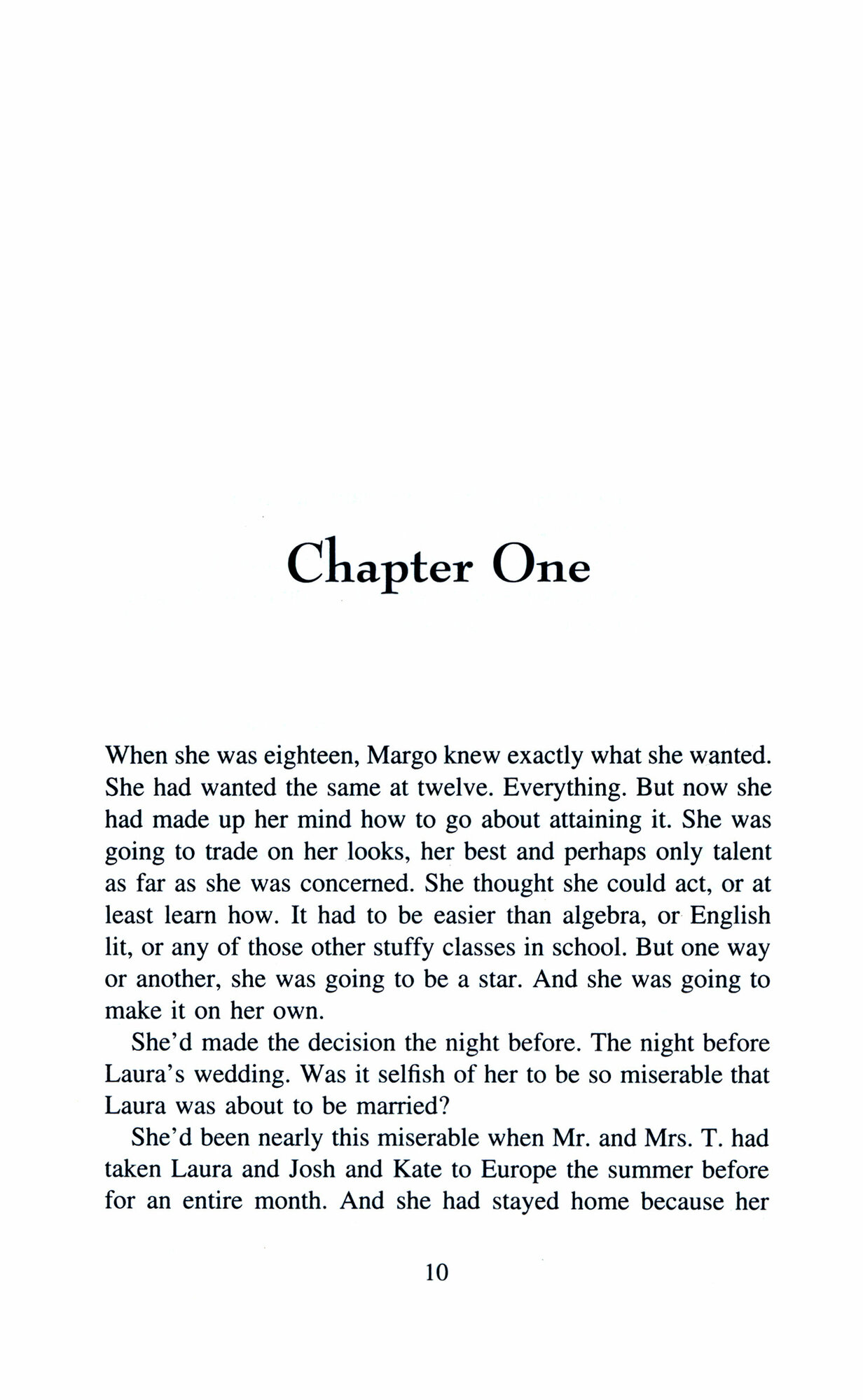 Raised together, Kate, Margo, and Laura are as close as real sisters, despite their differing backgrounds. Laura Templeton is the beloved daughter of the wealthy Templetons, Kate Powell is her orphaned cousin, and Margo Sullivan is the housekeeper's daughter.