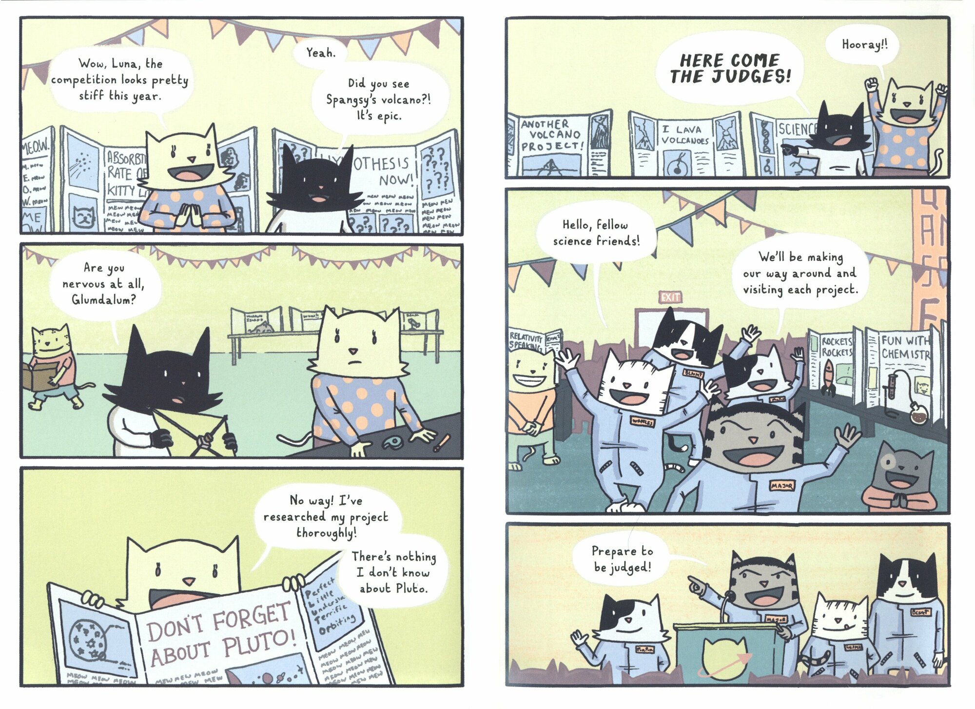 In the fifth book in the CatStronauts graphic novel series, Pom Pom pushes her experiments to the limit on the International Space Station, while the cats at Mission Control take a much needed break. What could possibly go wrong?