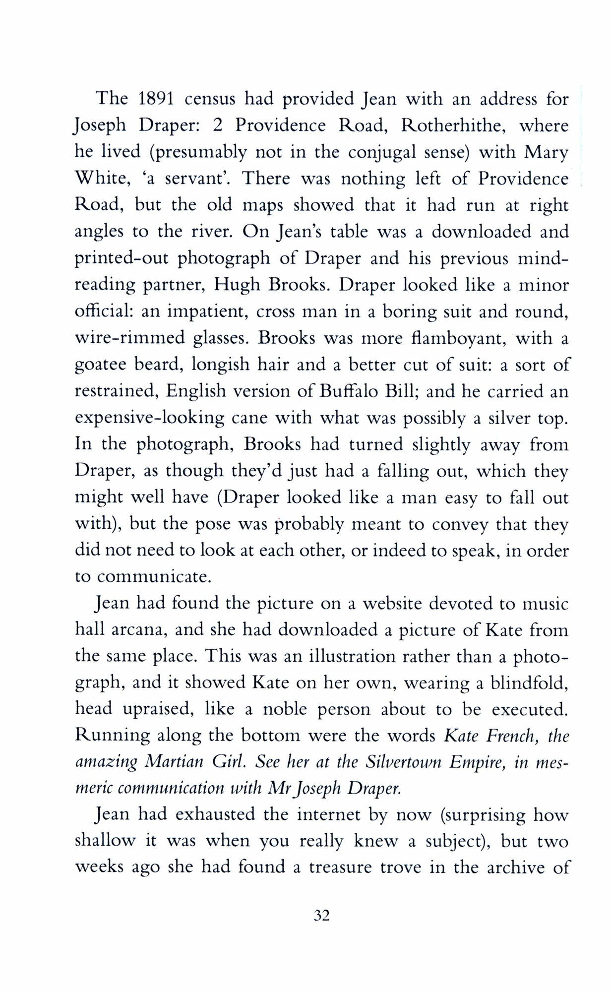 As Jean makes progress on her show, Kate - long since dead - begins to consume her thoughts. Jean starts to suspect that Draper fully believed in Kate's ability to read minds and that he found the idea deeply disturbing. What really happened between the two of them all those years ago? And why does Jean feel such an intense bond with The Martian Girl? As the line between Jean and Kate begins to blur, the fates of the two women are destined to transcend time, and finally to intersect.