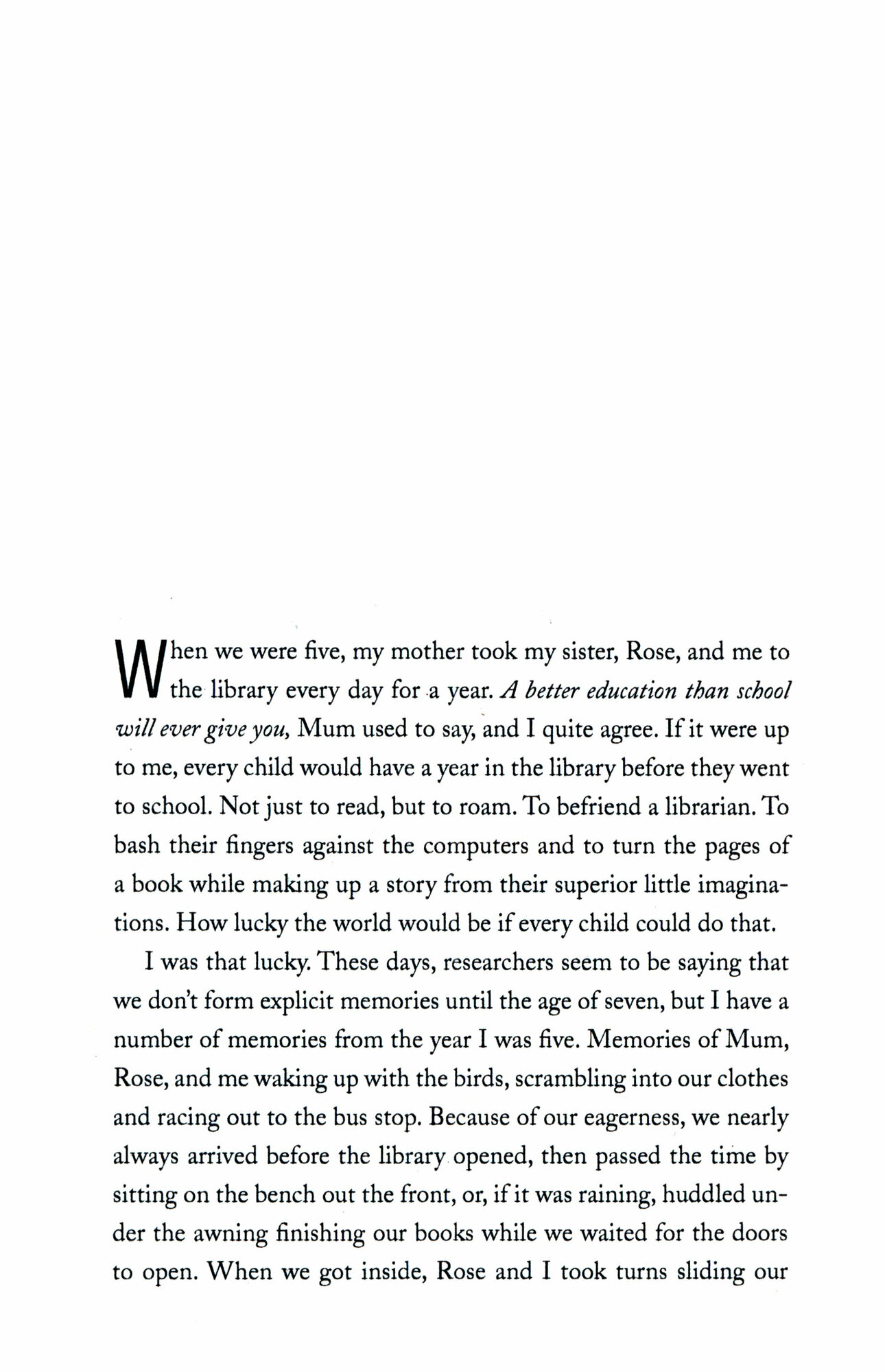 Fern Castle works in her local library. She has dinner with her twin sister Rose three nights a week. And she avoids crowds, bright lights and loud noises as much as possible. Fern has a carefully structured life and disrupting her routine can be . . . dangerous.