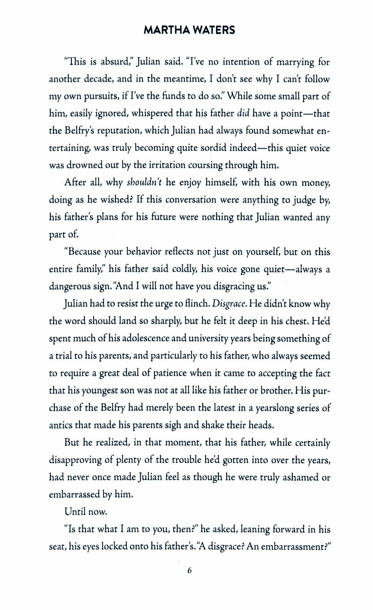 Lord Julian Belfry is the second son of a marquess, but has managed to scandalise polite society with his acting career and the fact that he owns a less than salubrious theatre.